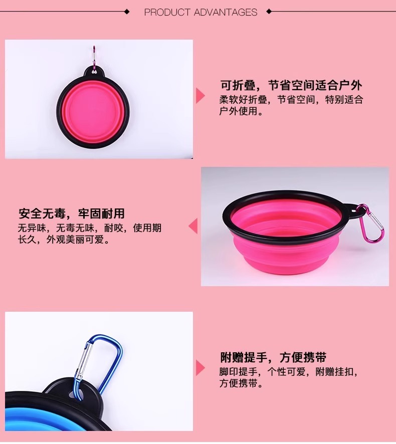 宠物狗狗硅胶折叠碗狗盆外出饮水碗便携式狗碗户外喝水狗食盆用品