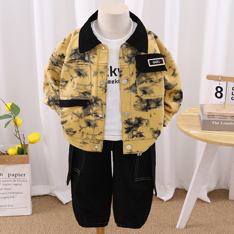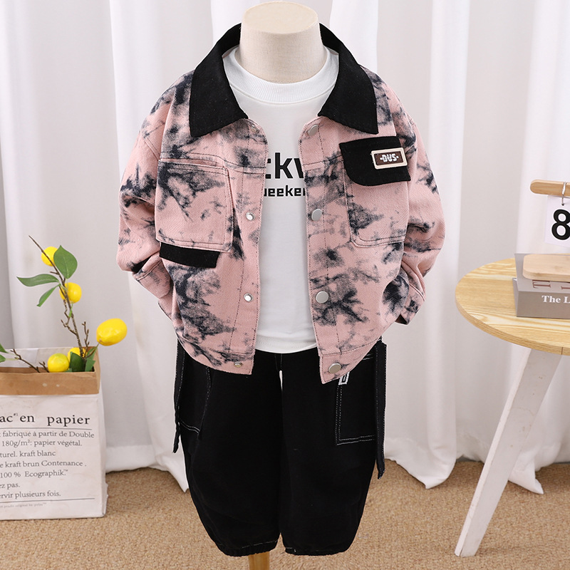 소년 셔츠 정장, 멋진 아동복, 봄 상의, 타이 염색 가디건, 2025 신작 소년 긴팔 셔츠 도매스토어 가기
