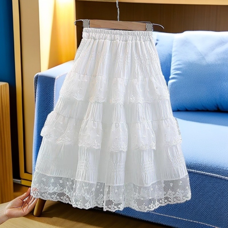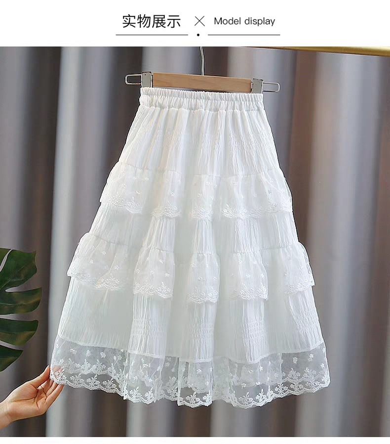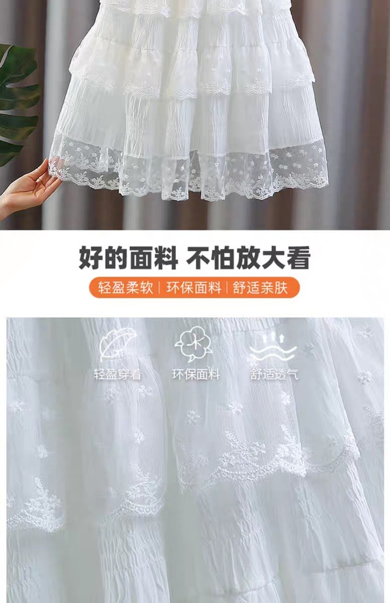여자 2025 새로운 스커트 여름 드레스 큰 어린이 여름 슈퍼 요정 케이크 스커트 어린이 흰색 중간 길이 스커트스토어 가기
