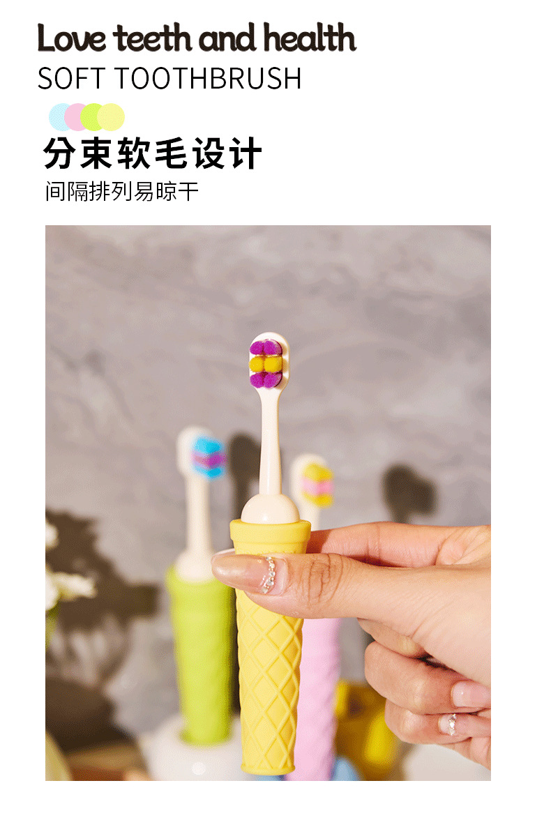3-12세 어린이를 위한 잇몸 보호용 부드러운 칫솔, 귀엽고 귀여운 마카롱 아이스크림 부드러운 고무 미끄럼 방지 손잡이 도매 가능스토어 가기