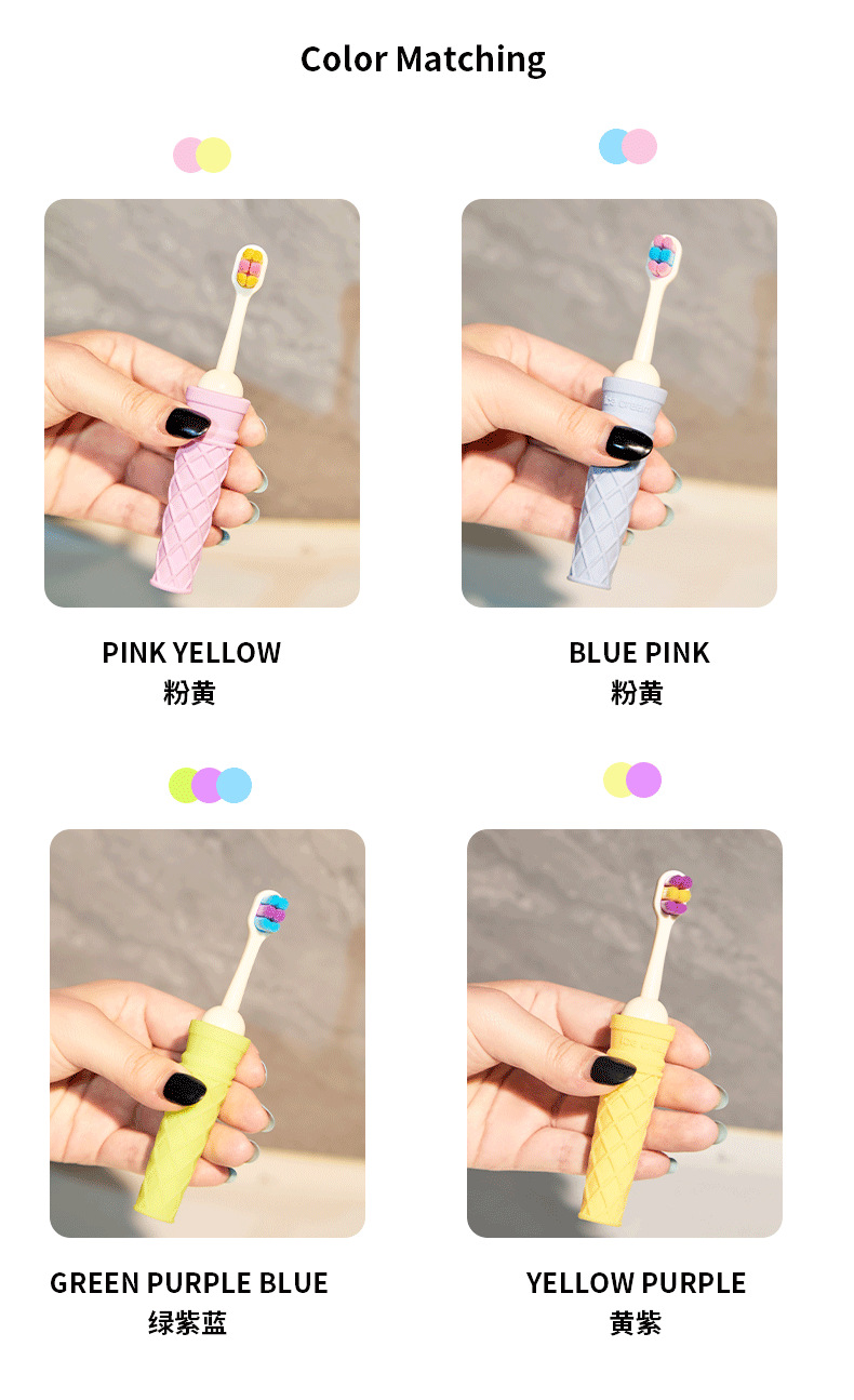 3-12세 어린이를 위한 잇몸 보호용 부드러운 칫솔, 귀엽고 귀여운 마카롱 아이스크림 부드러운 고무 미끄럼 방지 손잡이 도매 가능