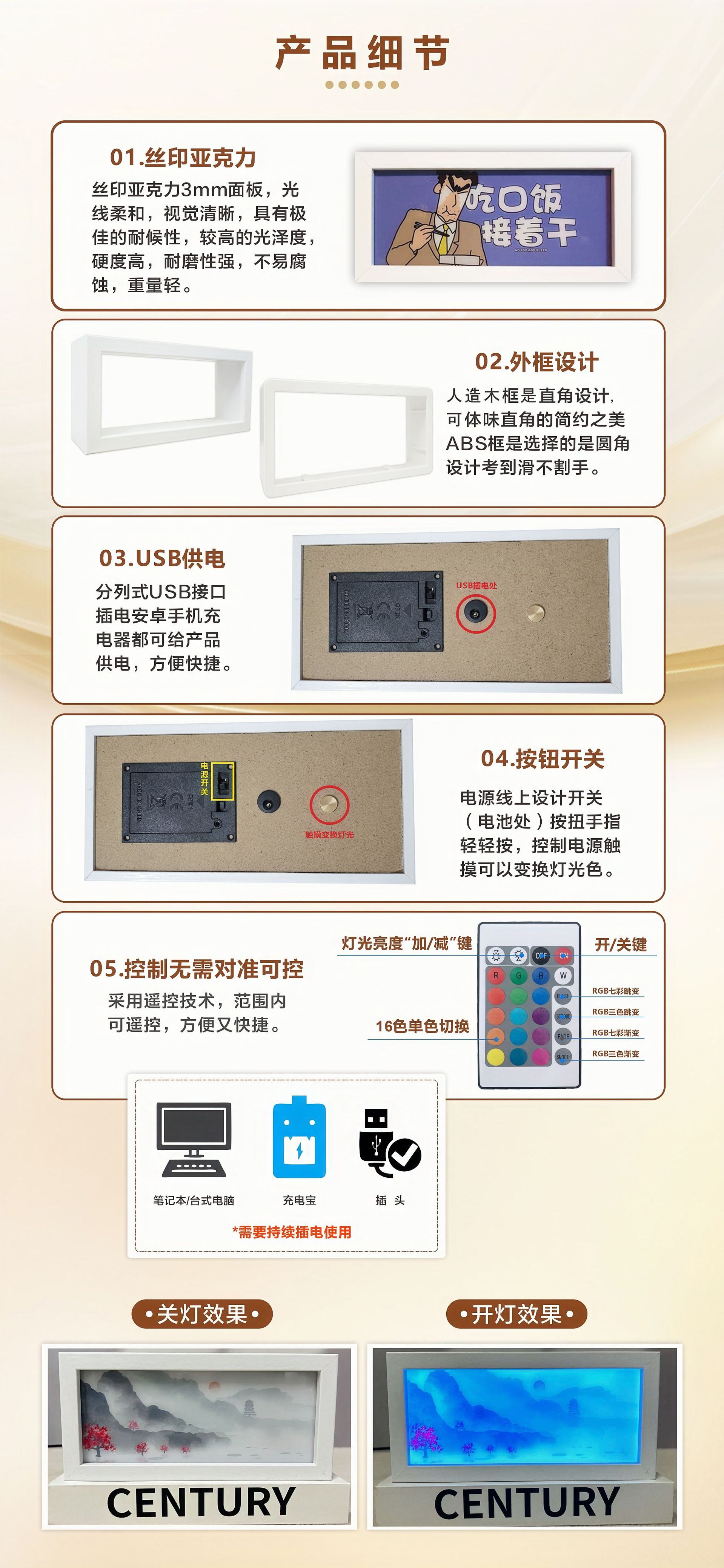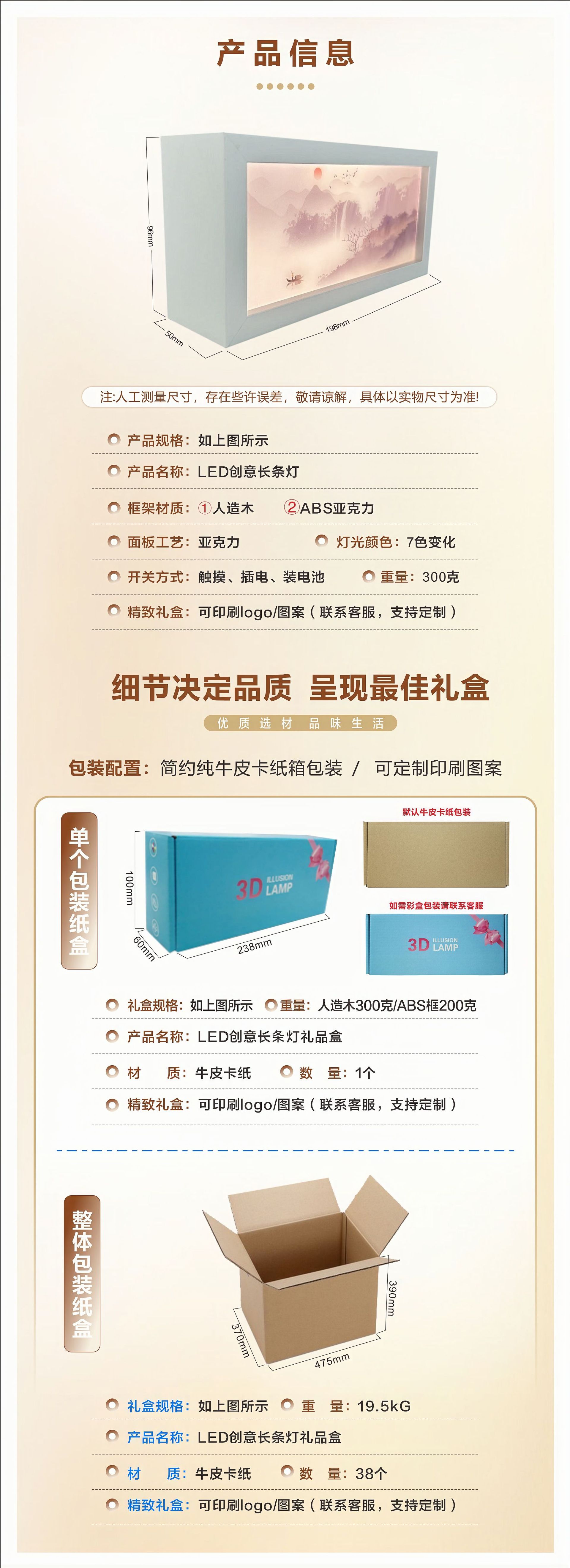 • 나무 프레임 [단색 온백색광 플러그인 모델] 스트립 램프