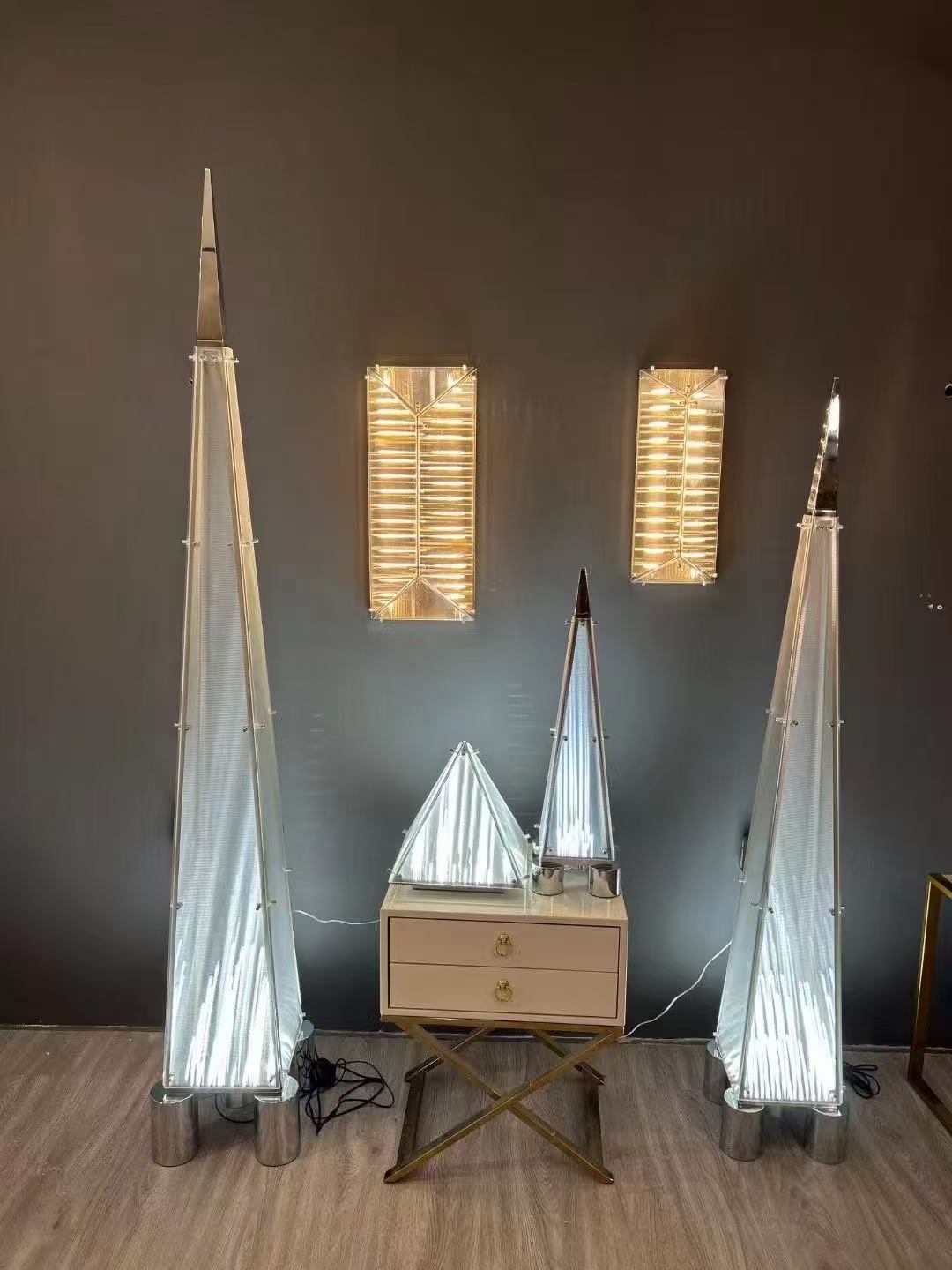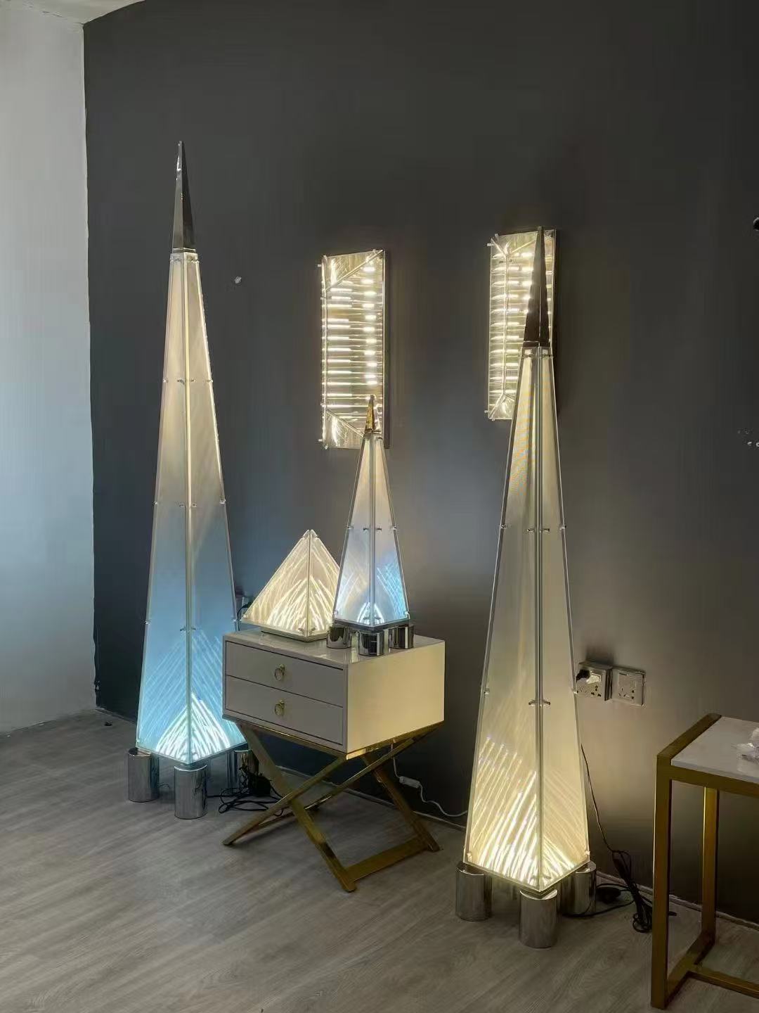 고급 미니멀하고 창의적인 빌라 피라미드 간단한 거실 소파 옆 빛과 그림자 예술 장식품 바닥 장식 램프