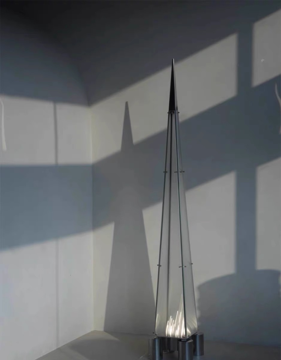 고급 미니멀하고 창의적인 빌라 피라미드 간단한 거실 소파 옆 빛과 그림자 예술 장식품 바닥 장식 램프스토어 가기