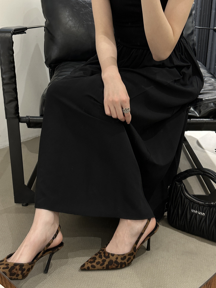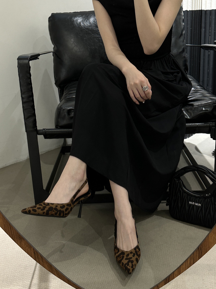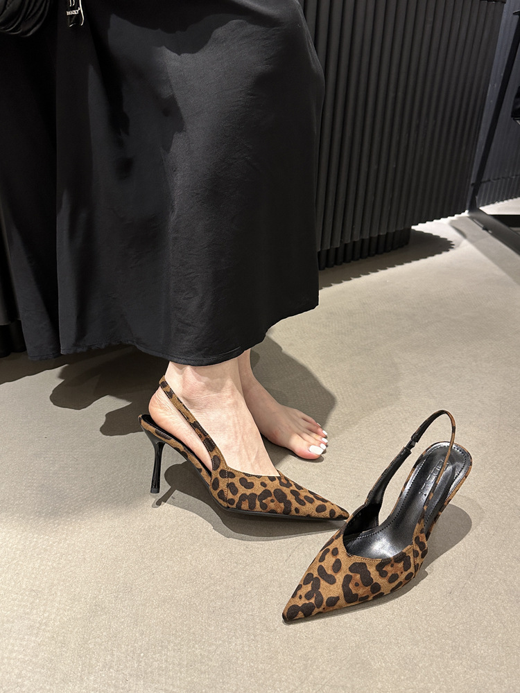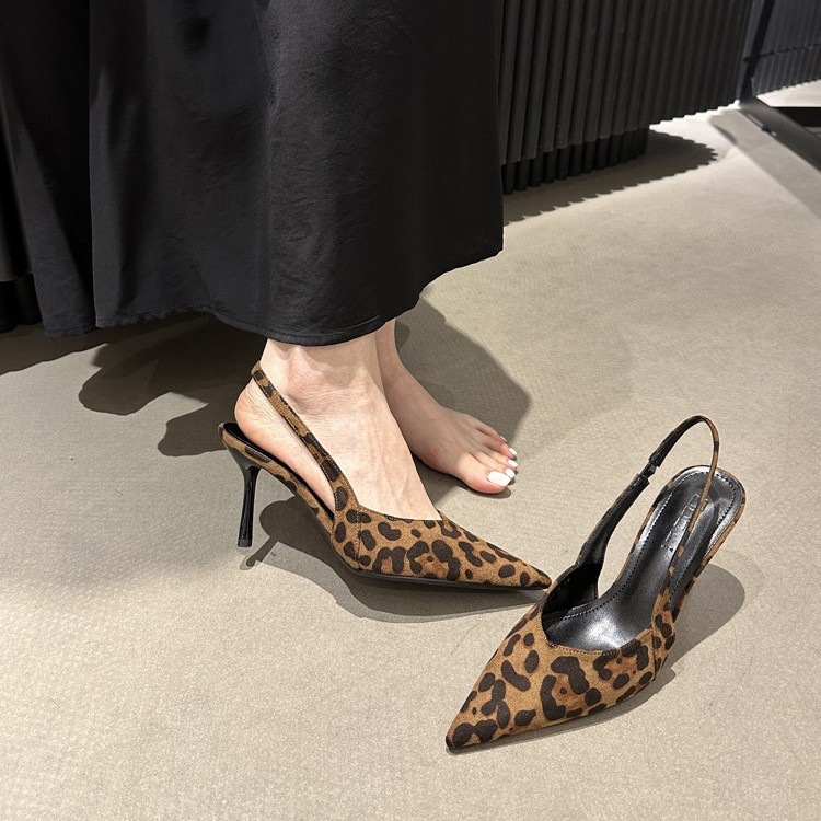 니치 프렌치 레오파드 프린트 하이힐, 토캡 샌들, 페어리 슈즈, 2025 봄 여름 신상 스웨이드 포인티드 슈즈스토어 가기