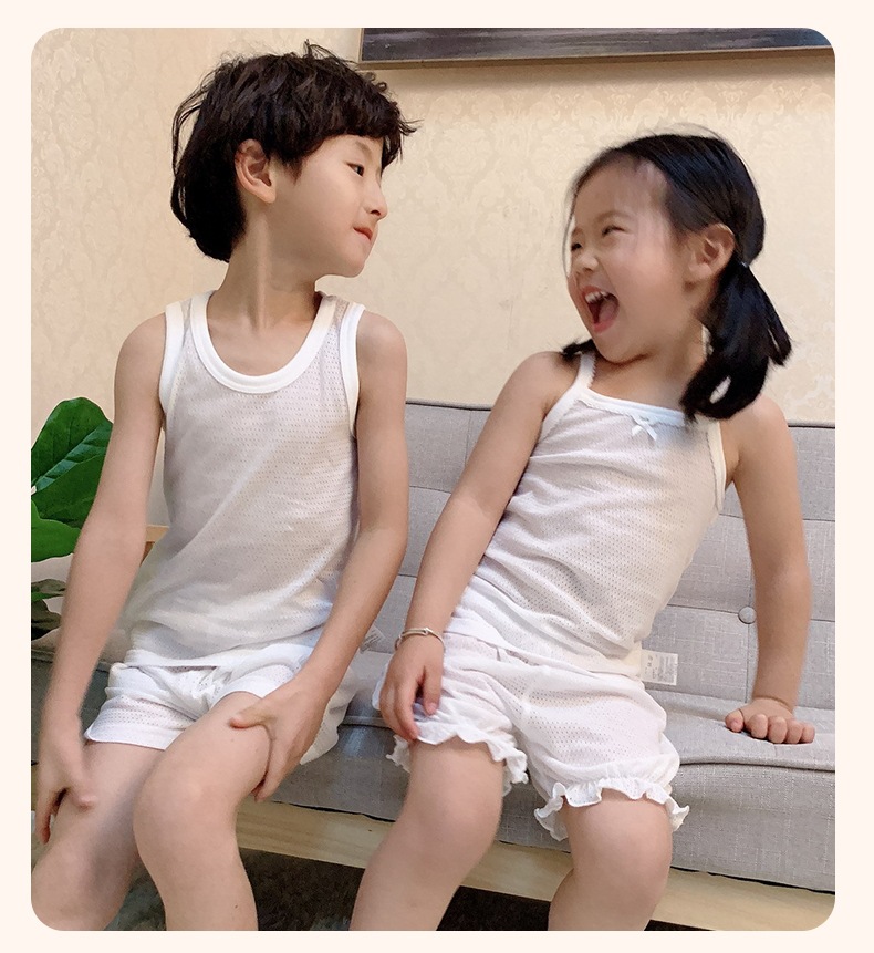 메쉬 아동용 반바지 여름 통기성 얇은 3점 바지 소년 소녀용 순면 카테고리 A 아동용 홈 베이비 파자마