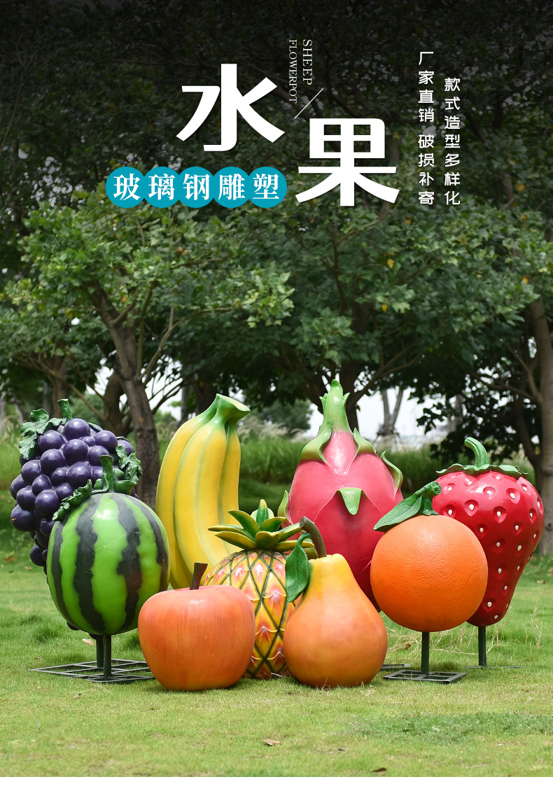 시뮬레이션 과일과 야채 유리 섬유 강화 플라스틱 조각 정원 풍경 안뜰 농장 양배추 딸기 호박 바닥 장식품스토어 가기