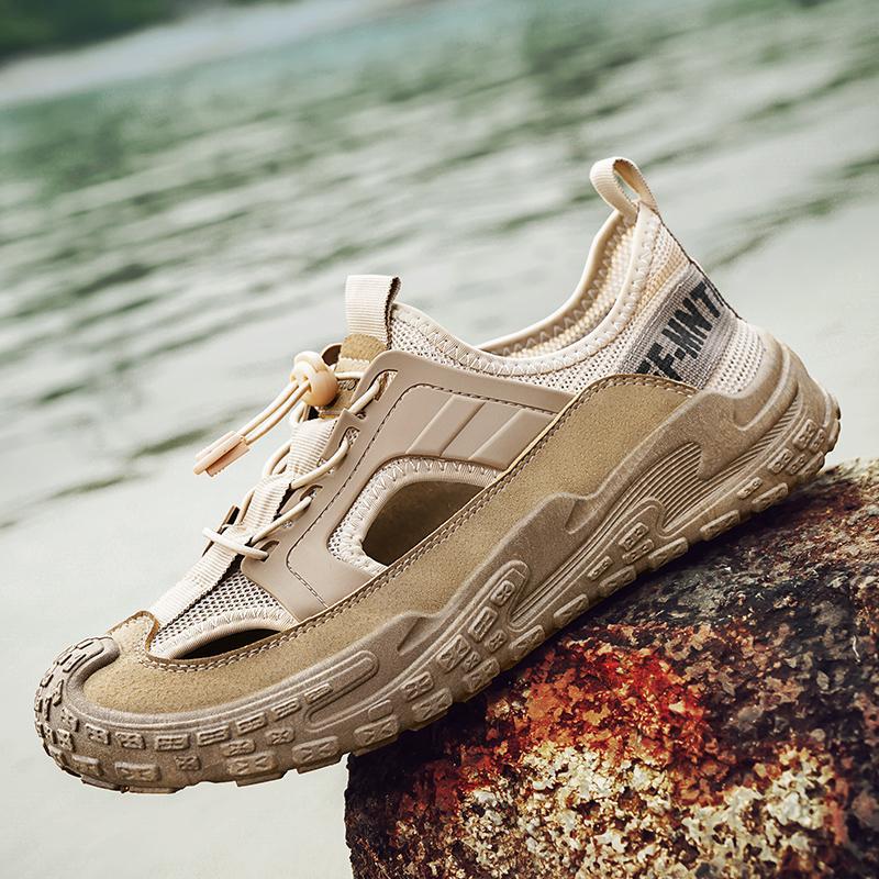 2025년 여름 남성용 운전화, 통기성 샌들, 야외 스포츠 웨이딩 슈즈, 남성용 속건성 대형 메쉬 슈즈