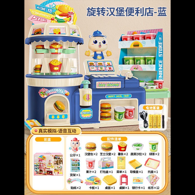 어린이 햄버거 편의점 놀이방 장난감 슈퍼마켓 현금 등록기 햄버거 가게 미니 주방 교육 소년 소녀스토어 가기