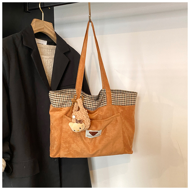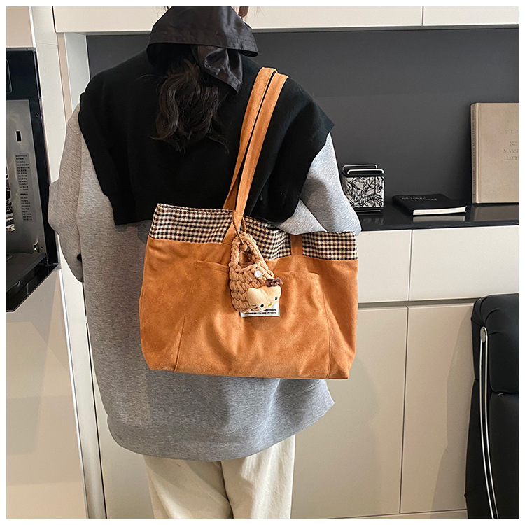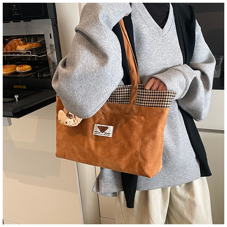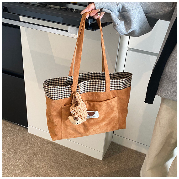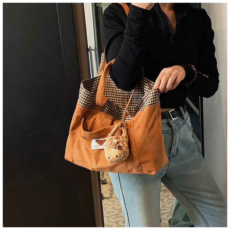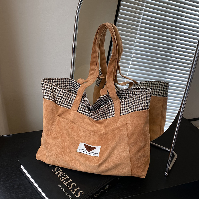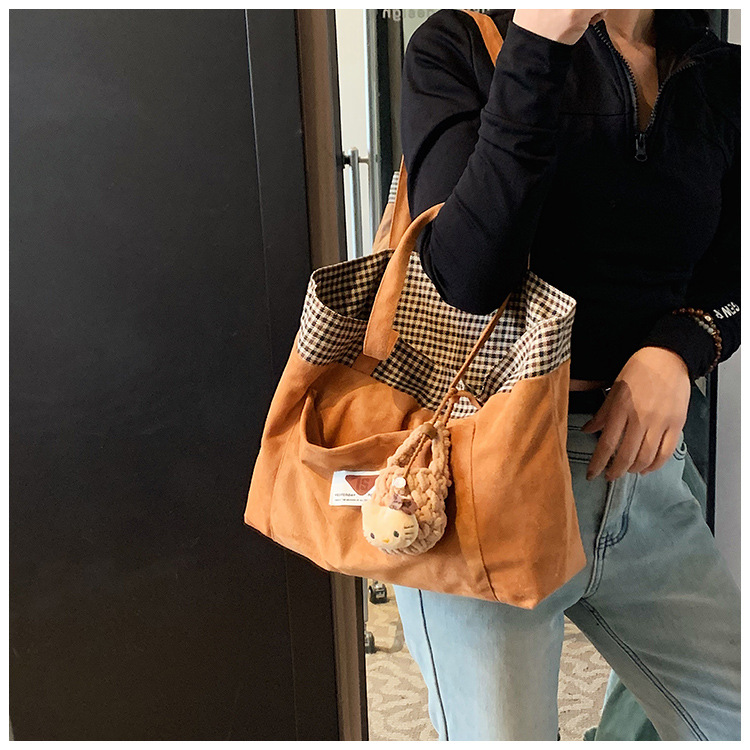 여성을위한 한국 대용량 토트 백 2025 새로운 패션 격자 무늬 핸드백 대학생 클래스 어깨 통근 가방스토어 가기
