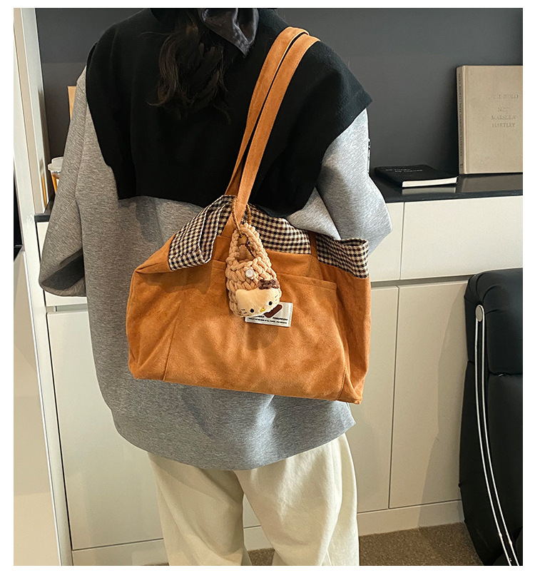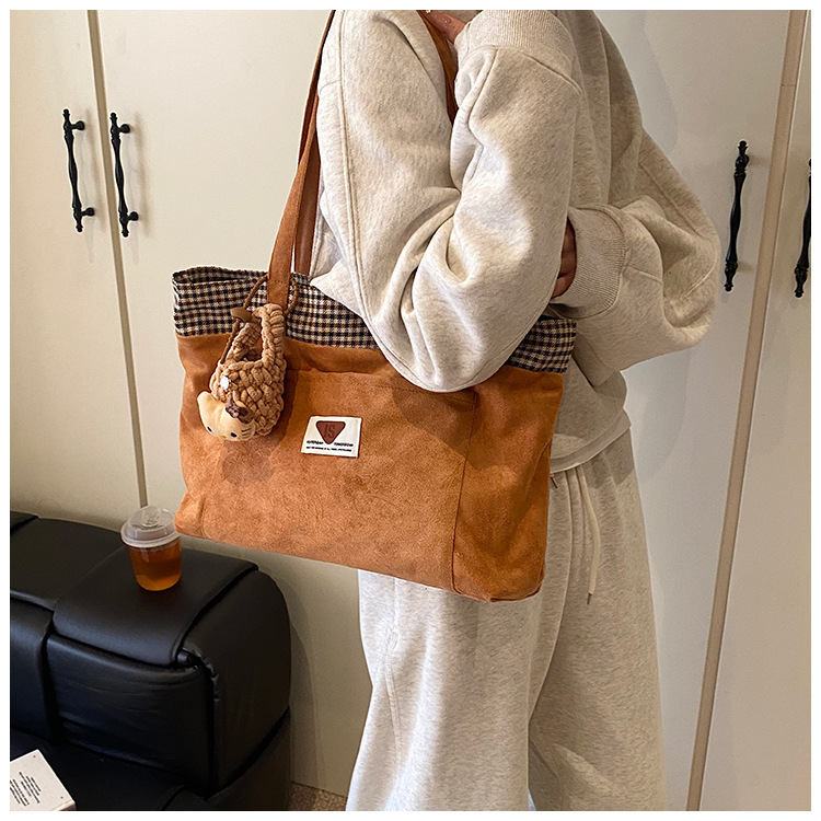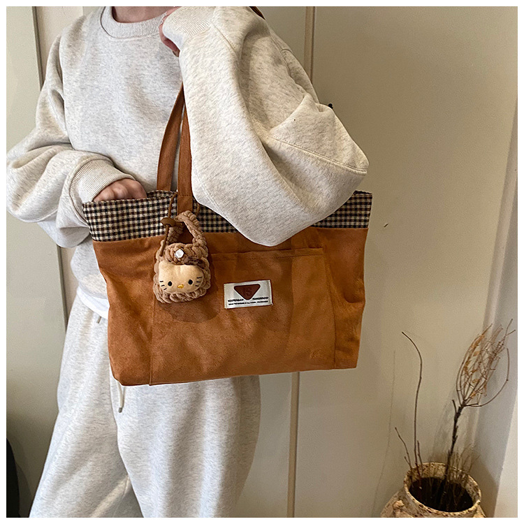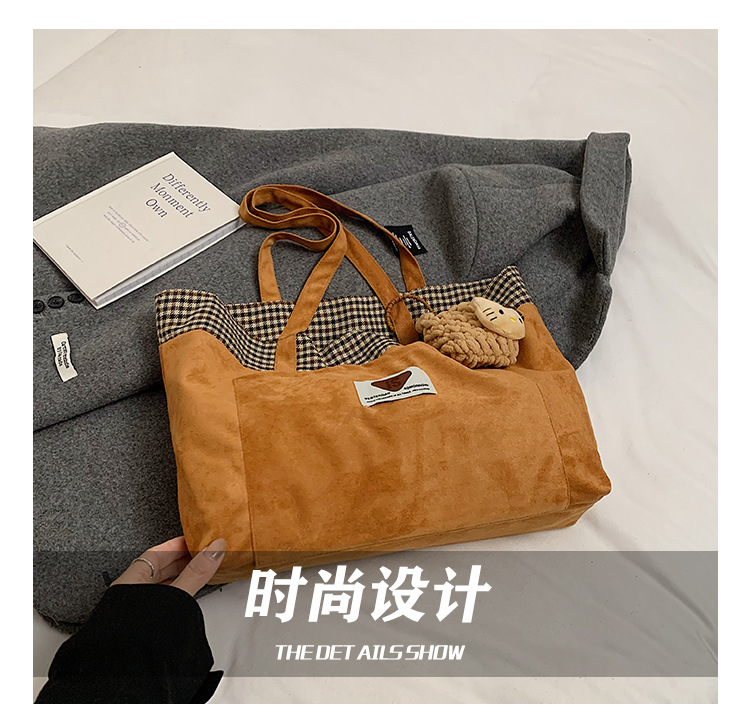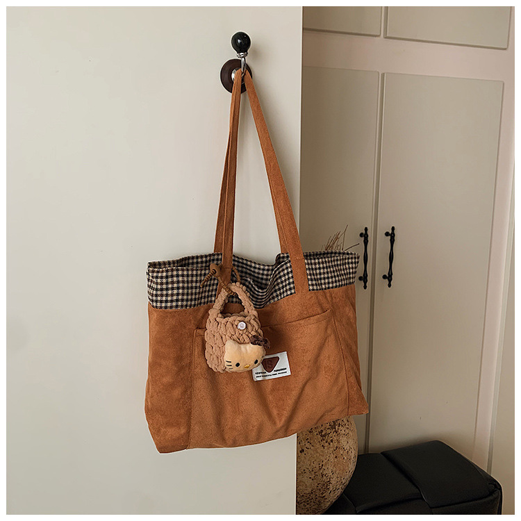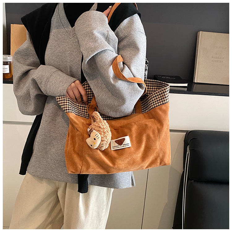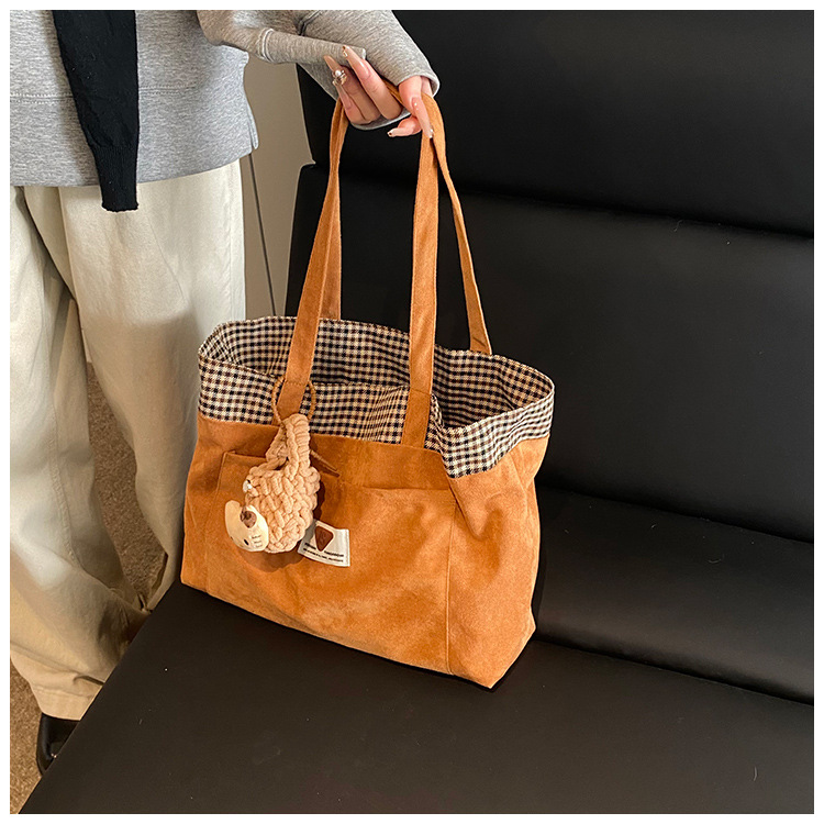여성을위한 한국 대용량 토트 백 2025 새로운 패션 격자 무늬 핸드백 대학생 클래스 어깨 통근 가방스토어 가기