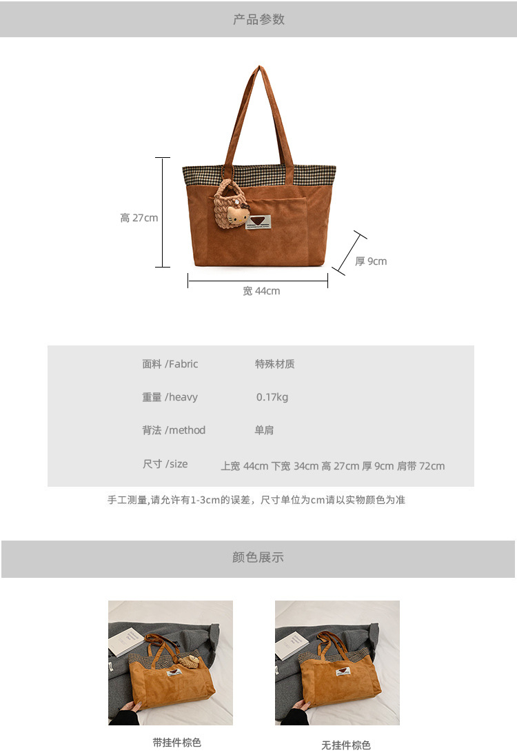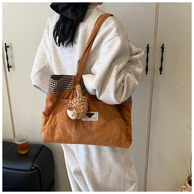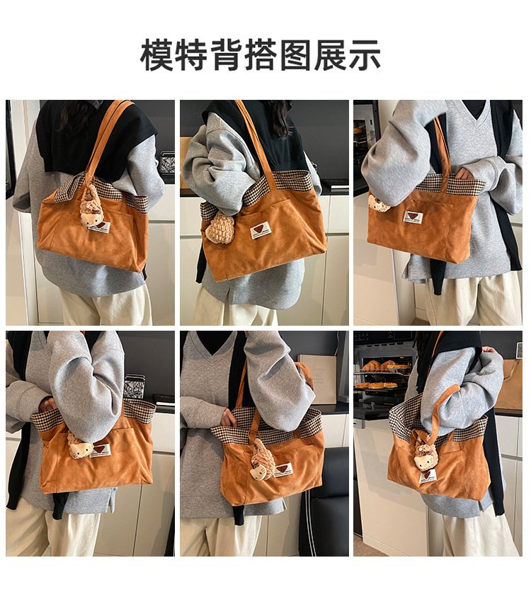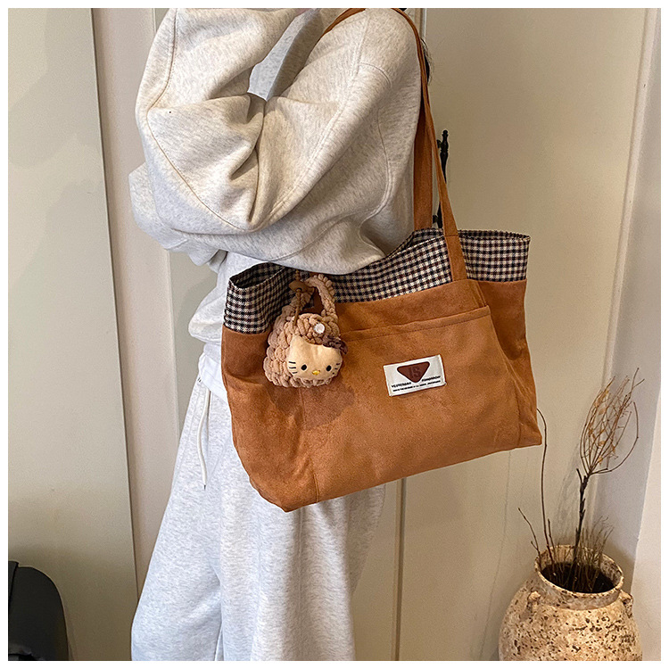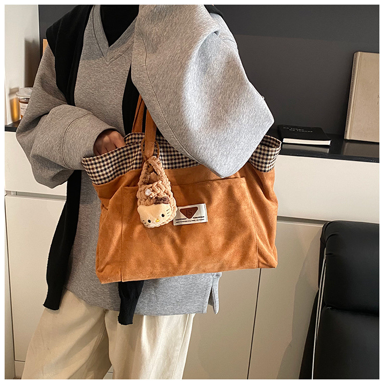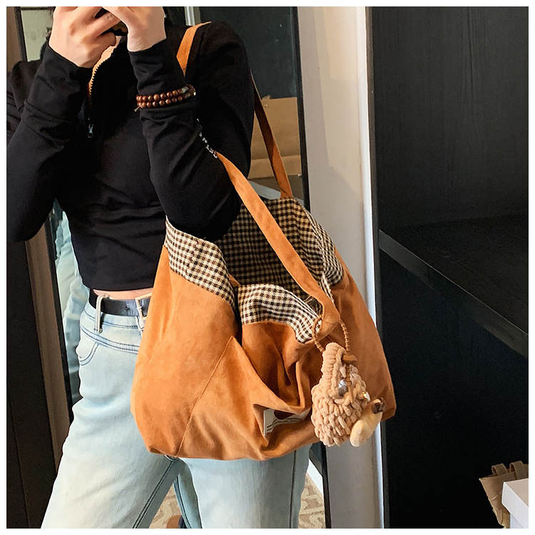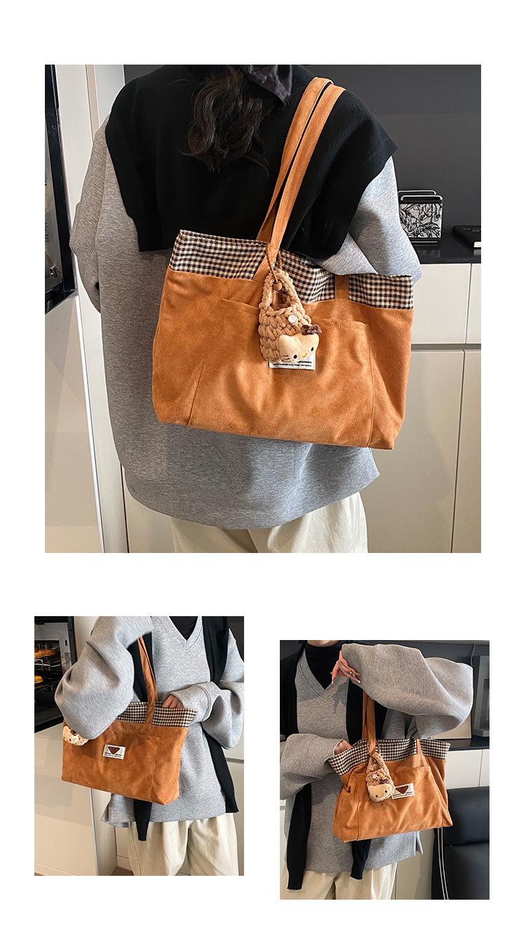 여성을위한 한국 대용량 토트 백 2025 새로운 패션 격자 무늬 핸드백 대학생 클래스 어깨 통근 가방스토어 가기