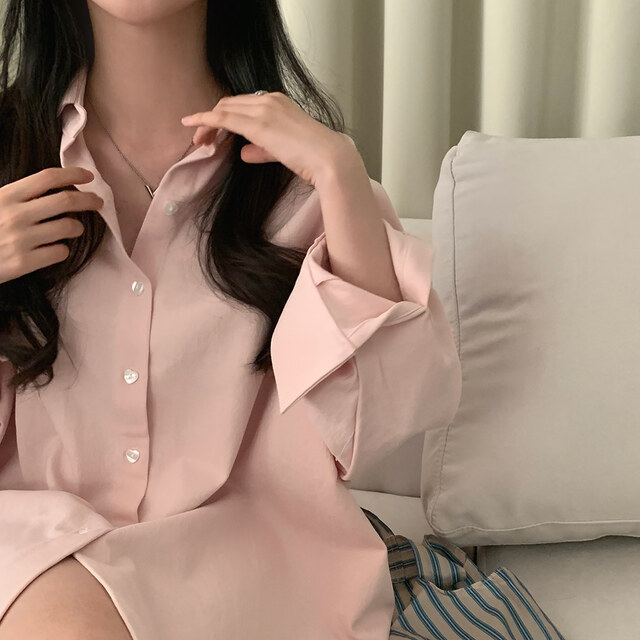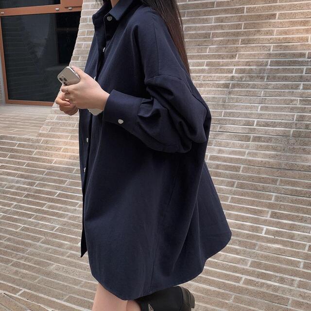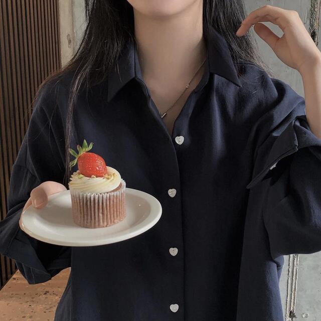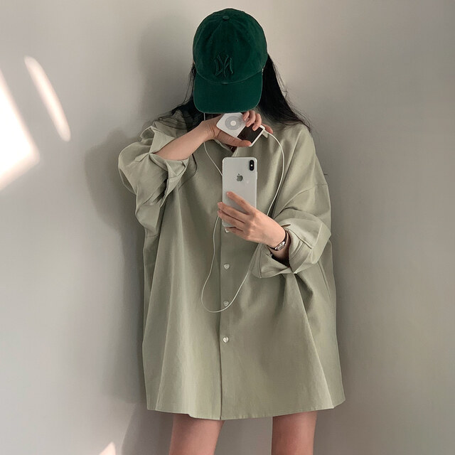 여성을위한 세련된 소녀의 마음 사랑 버클 느슨한 미디 긴 소매 셔츠스토어 가기