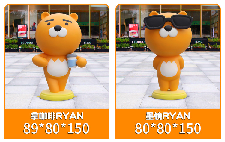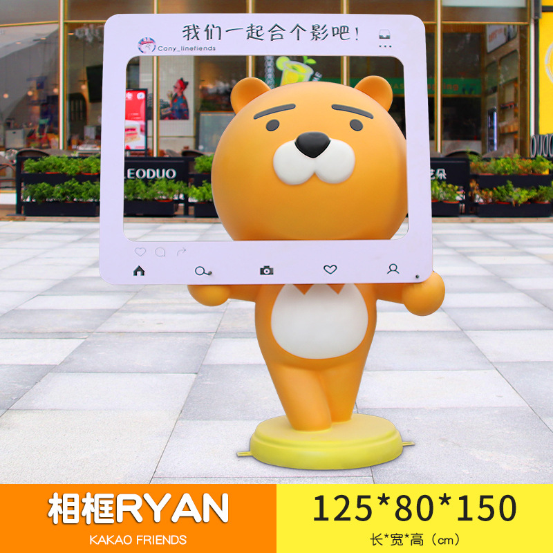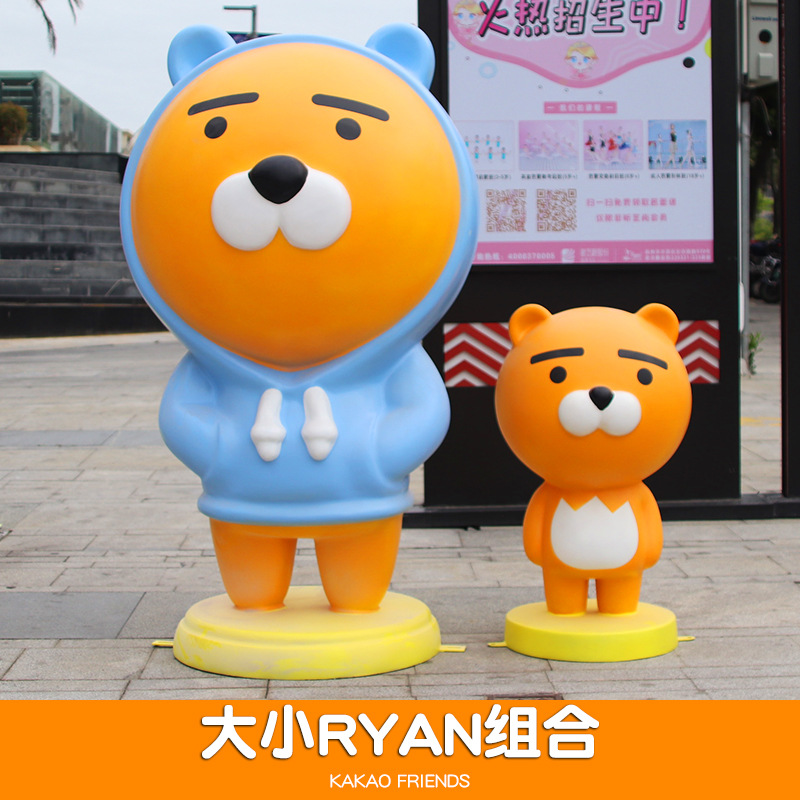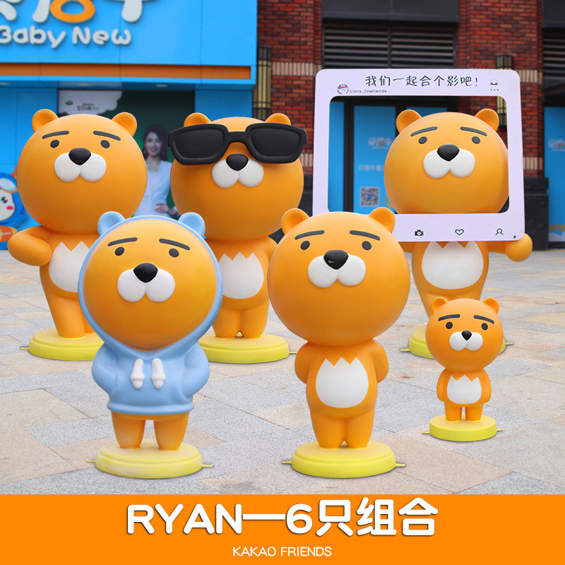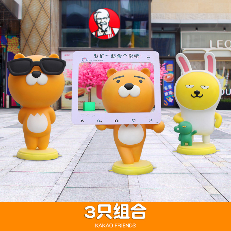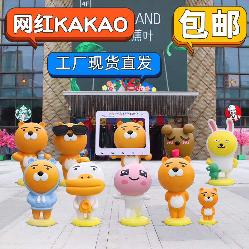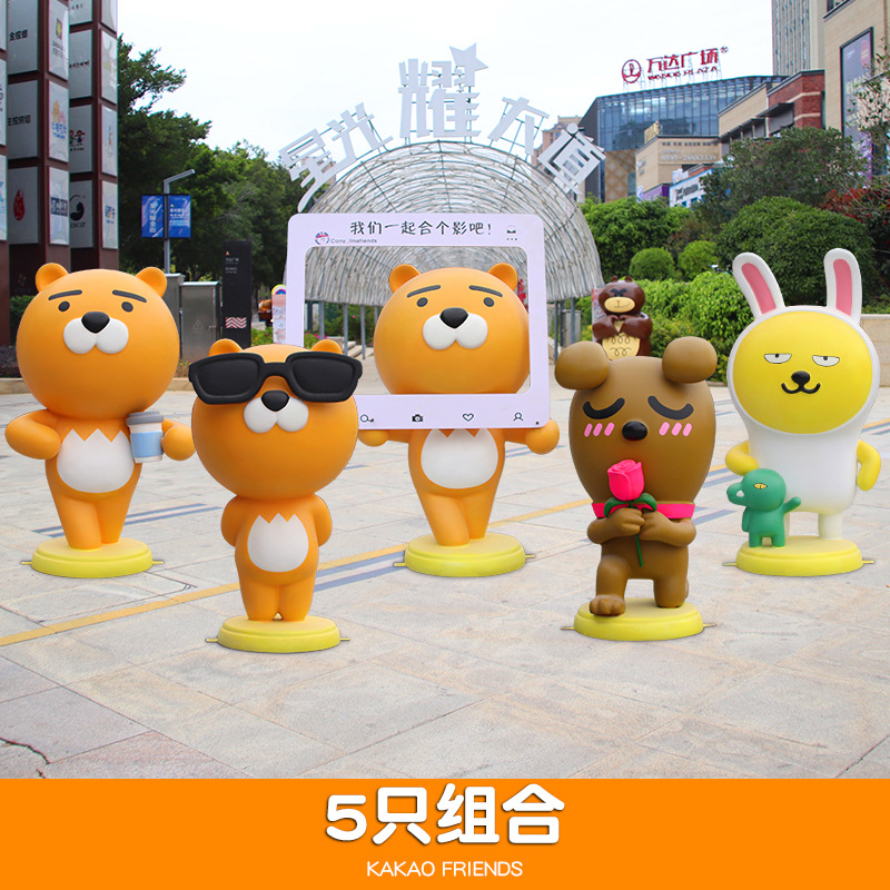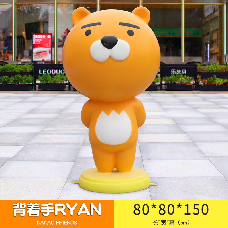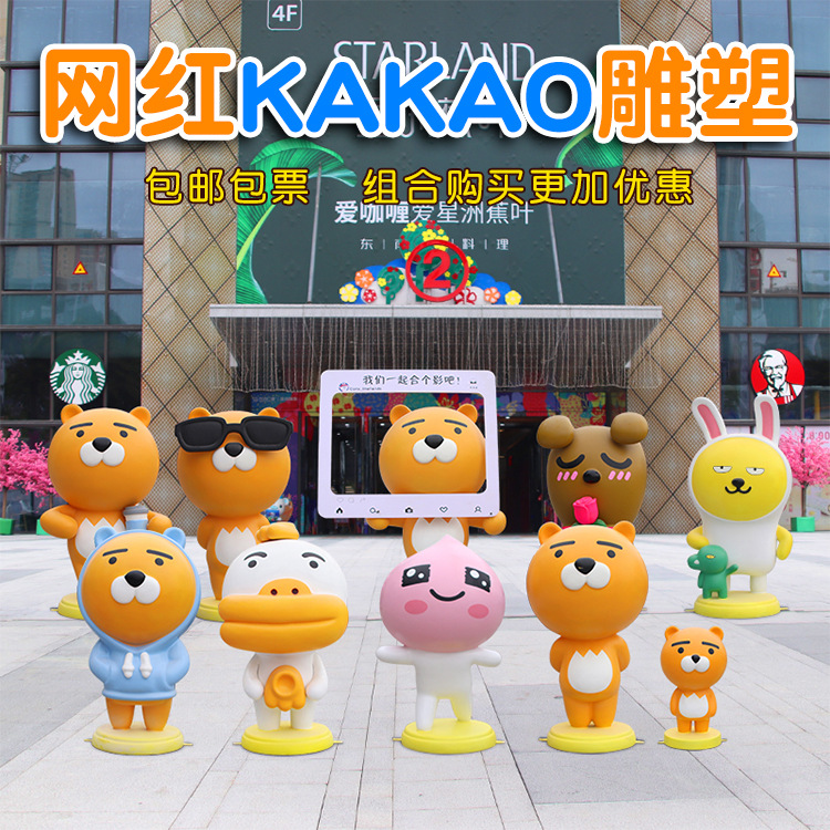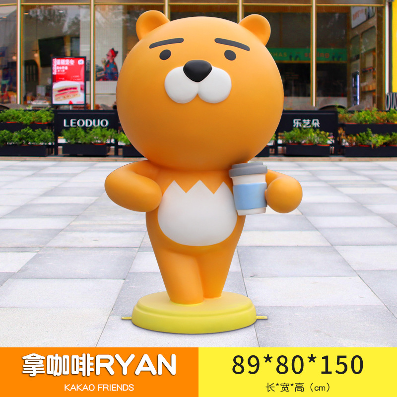 만화 카카오 대형 장식품 쇼핑몰 우유 차 가게 라이언 유리 강철 조각 다크 브라운 곰 벽 매달려 아름다운 첸 장식스토어 가기