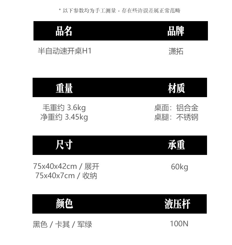 • 블랙-유압 전술 테이블 [무료 보관 가방]