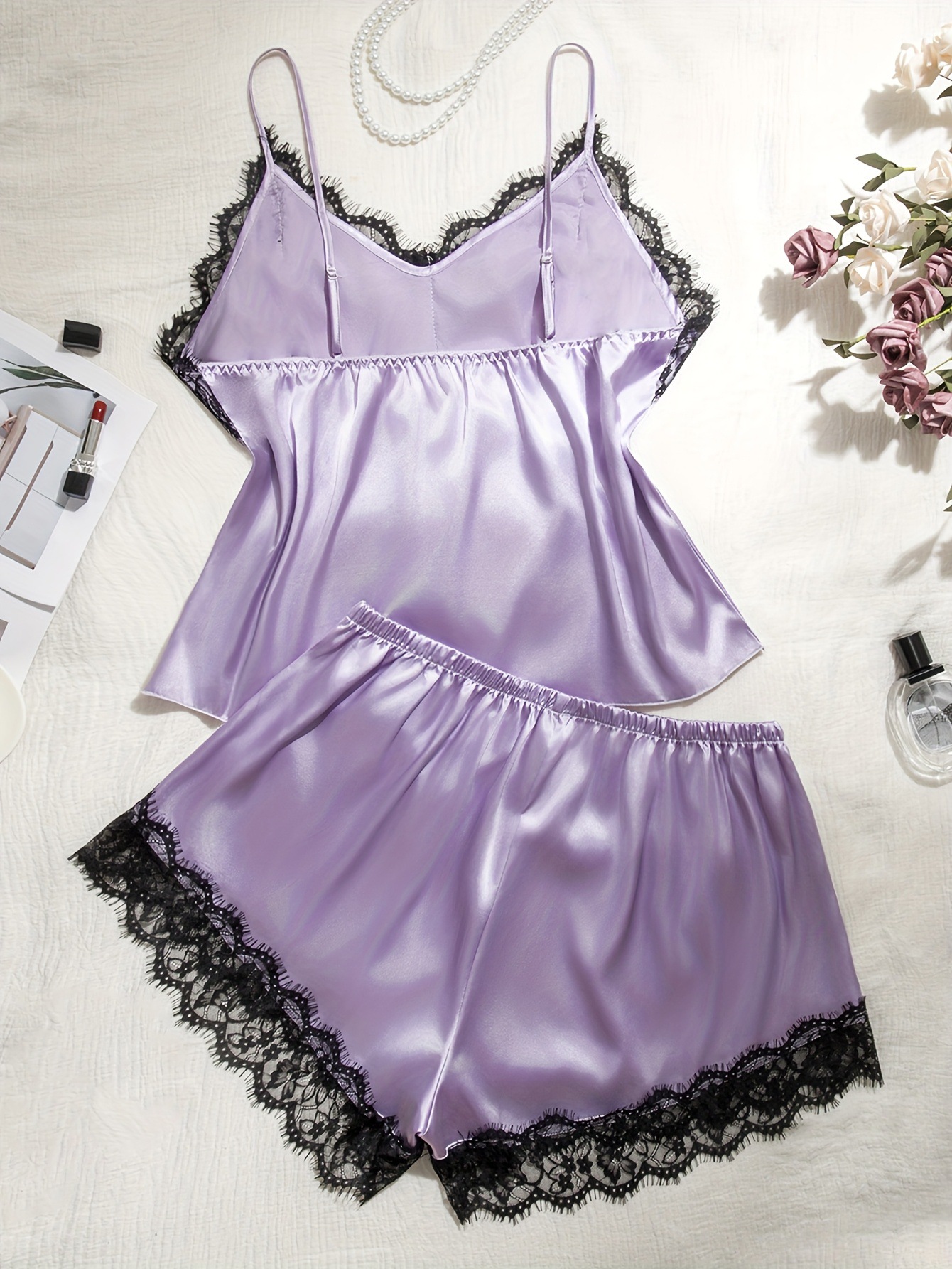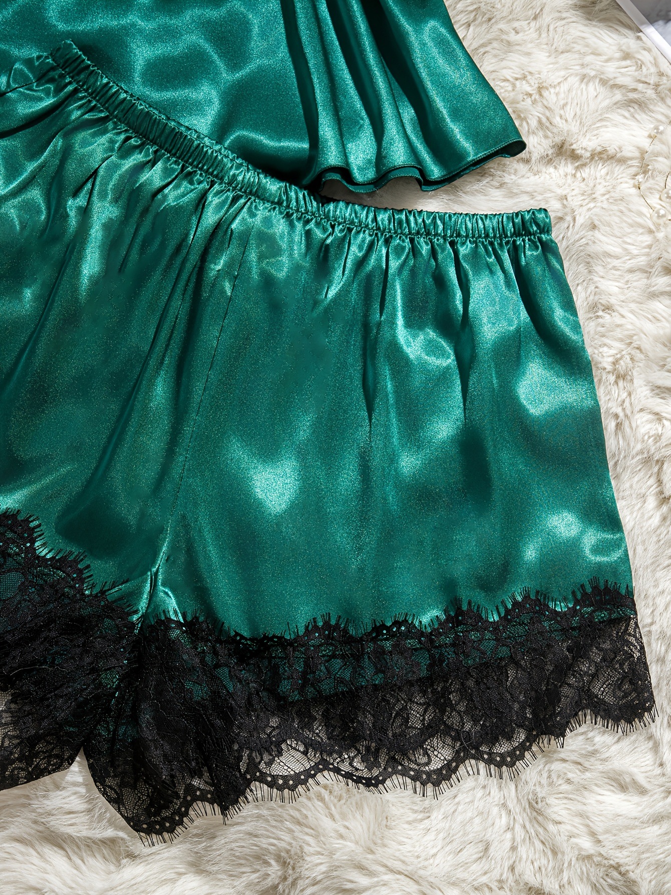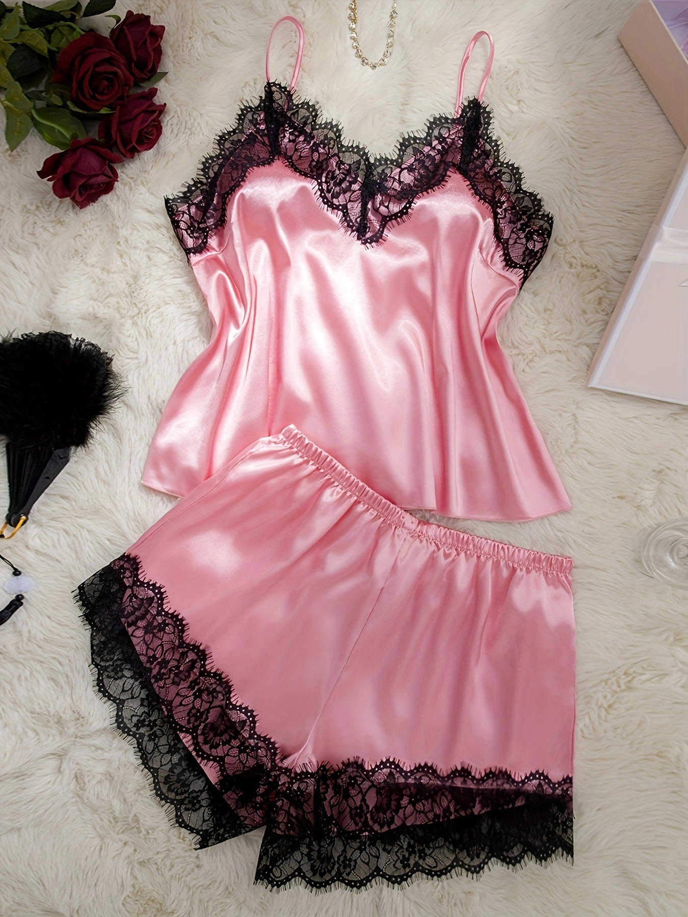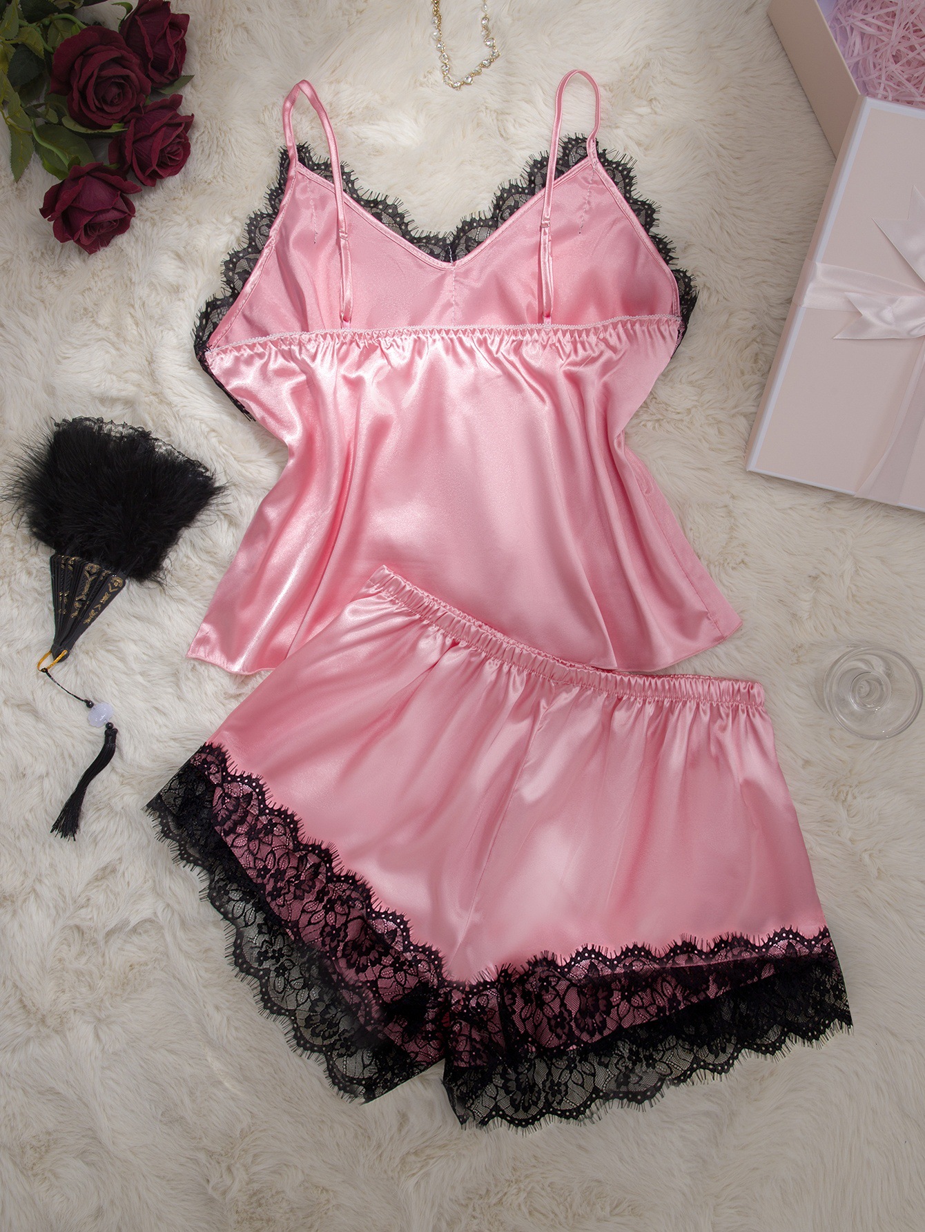 크로스보더 플러스 사이즈 여성 잠옷 세트 서스펜더 스커트 반바지 속눈썹 레이스 스플라이싱 솔리드 컬러