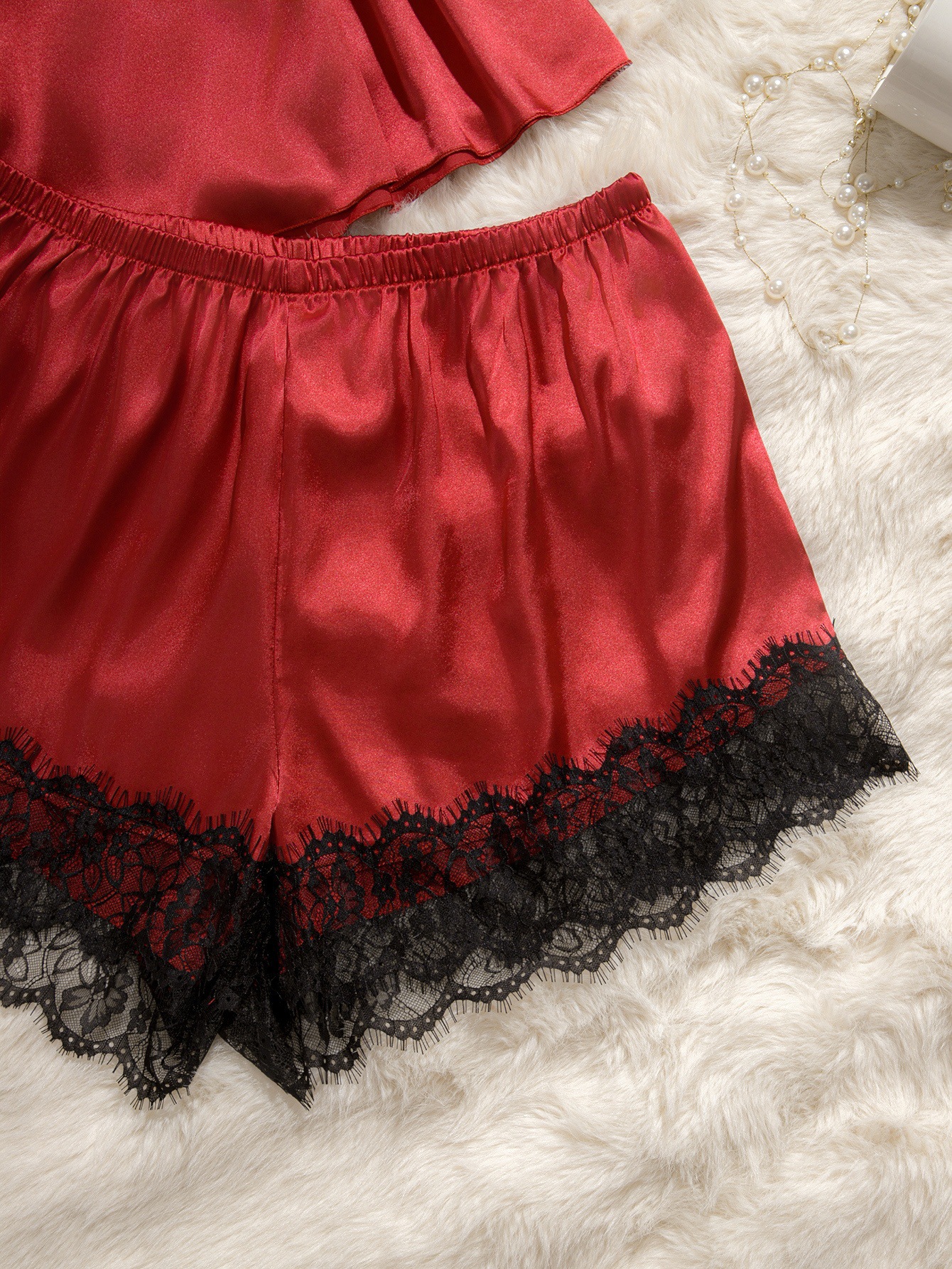 크로스보더 플러스 사이즈 여성 잠옷 세트 서스펜더 스커트 반바지 속눈썹 레이스 스플라이싱 솔리드 컬러스토어 가기