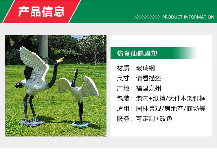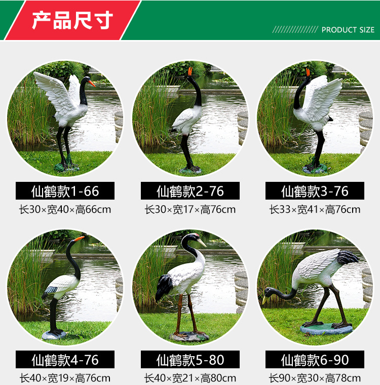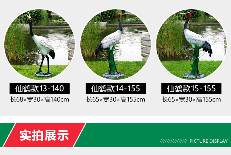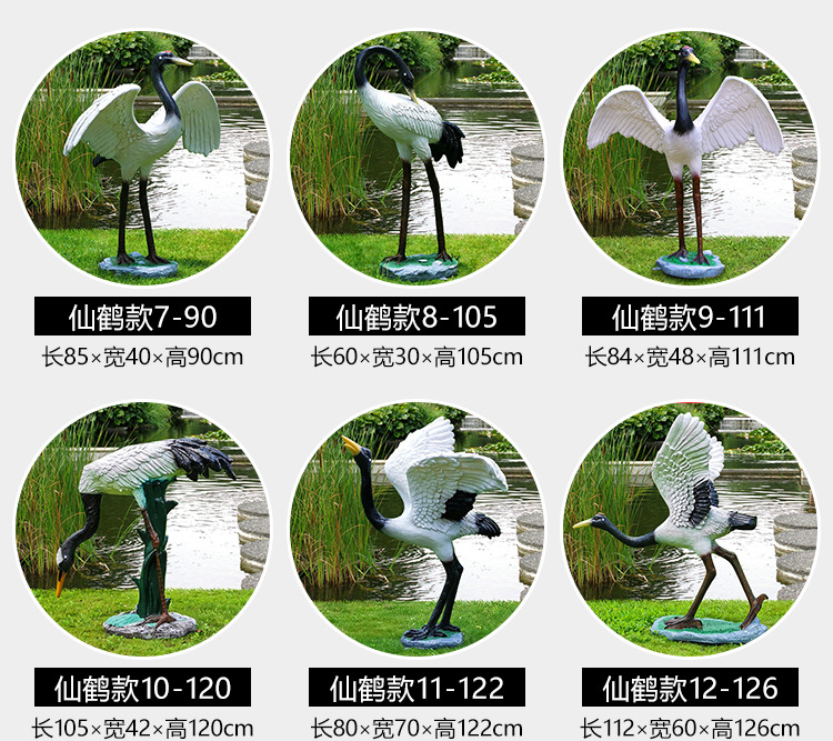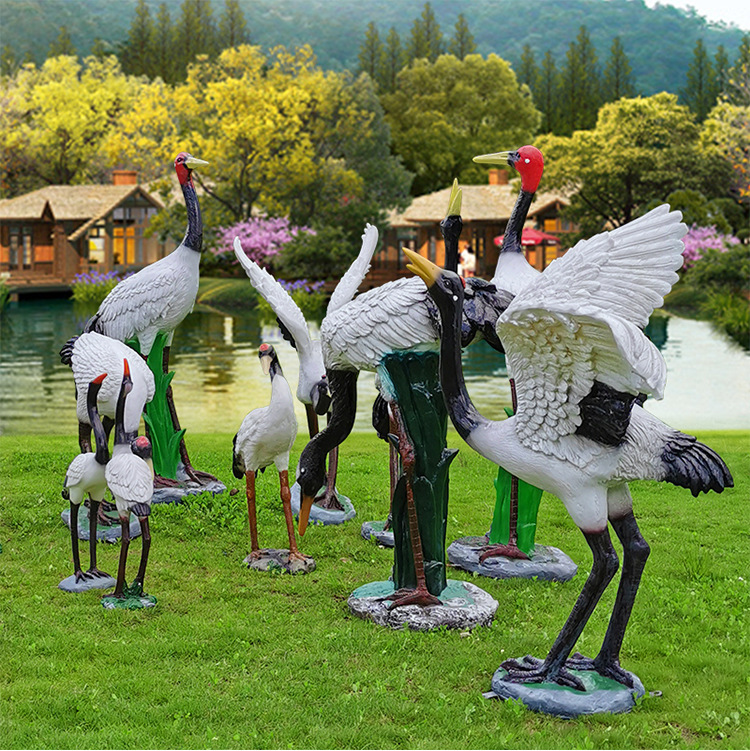 유리 섬유 강화 플라스틱 크레인 조각 시뮬레이션 동물 백로 장식 야외 꽃 정원 바위 수영장 호텔 큰 장식스토어 가기