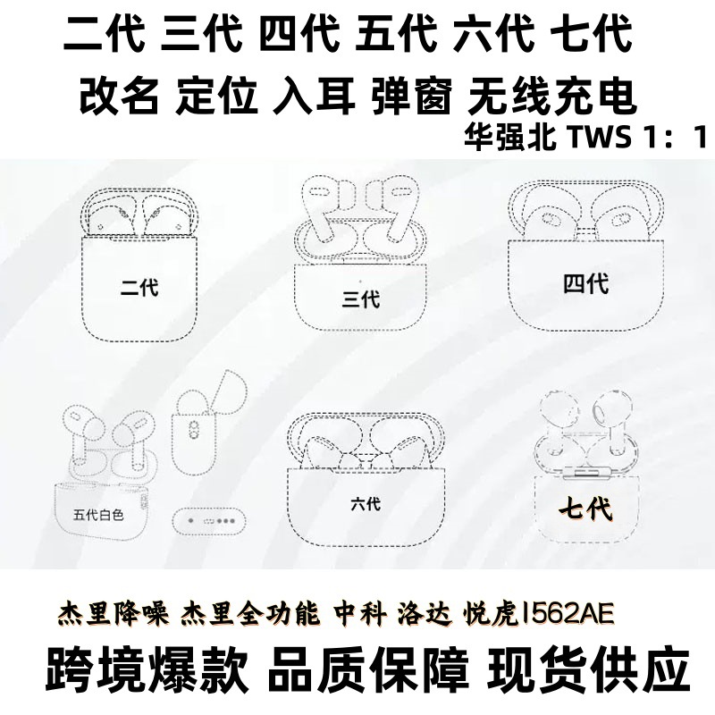 Huaqiangbei 7세대 블루투스 헤드셋 6세대 Jerry 소음 감소 7003 대외 무역 Pro2 5세대 Zhongke air4 국경 간 TWS