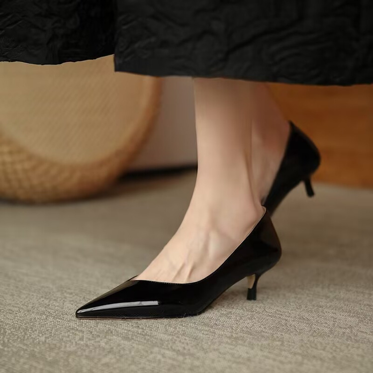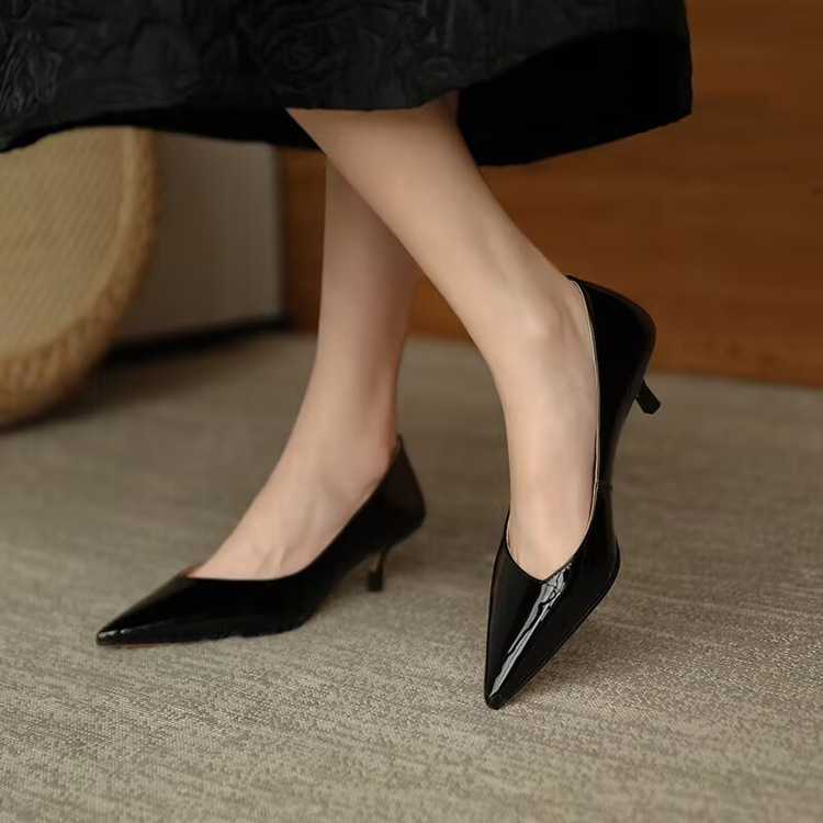 뾰족코 고양이굽 여성화 2025년 신상 봄 가을 출퇴근용 얕은 구두 V자형 얇은 굽 하이힐스토어 가기