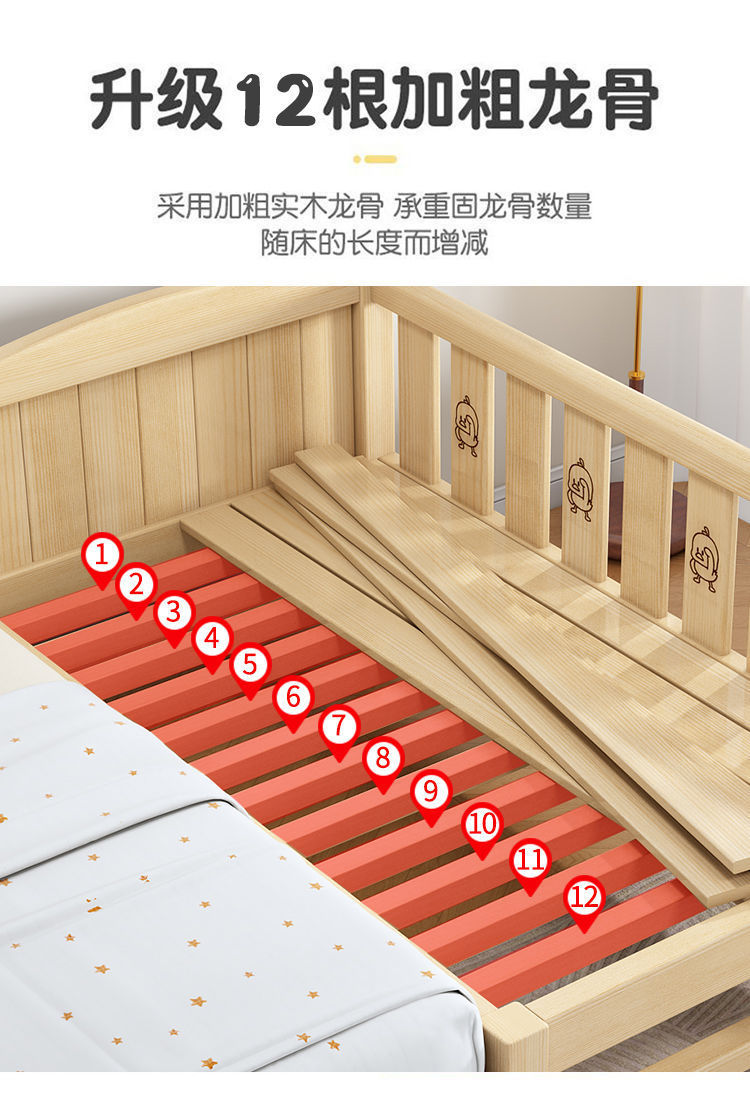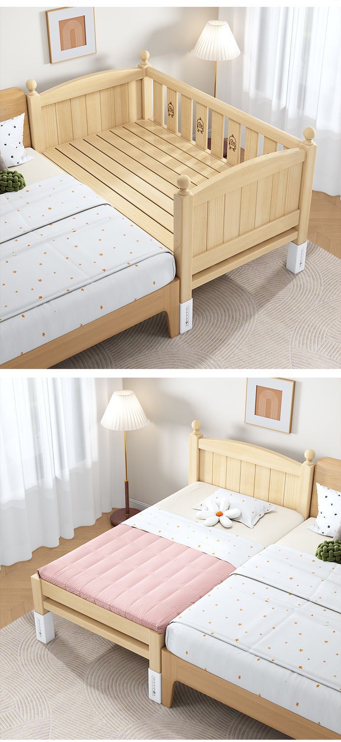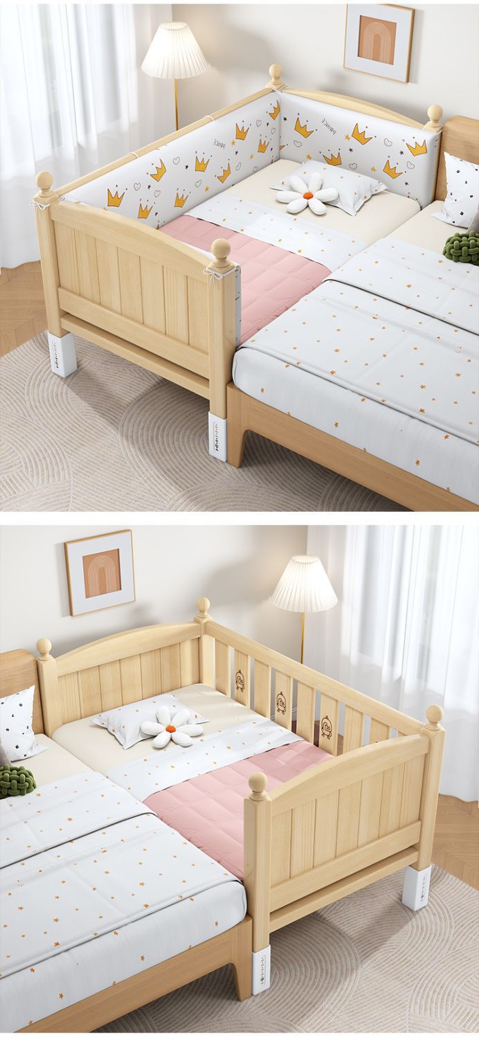 단단한 나무 접합 침대, 넓은 침대 옆, 남녀 아기 싱글 침대, 가드 레일이 있는 어린이 침대, 조절 가능한 유아용 침대스토어 가기