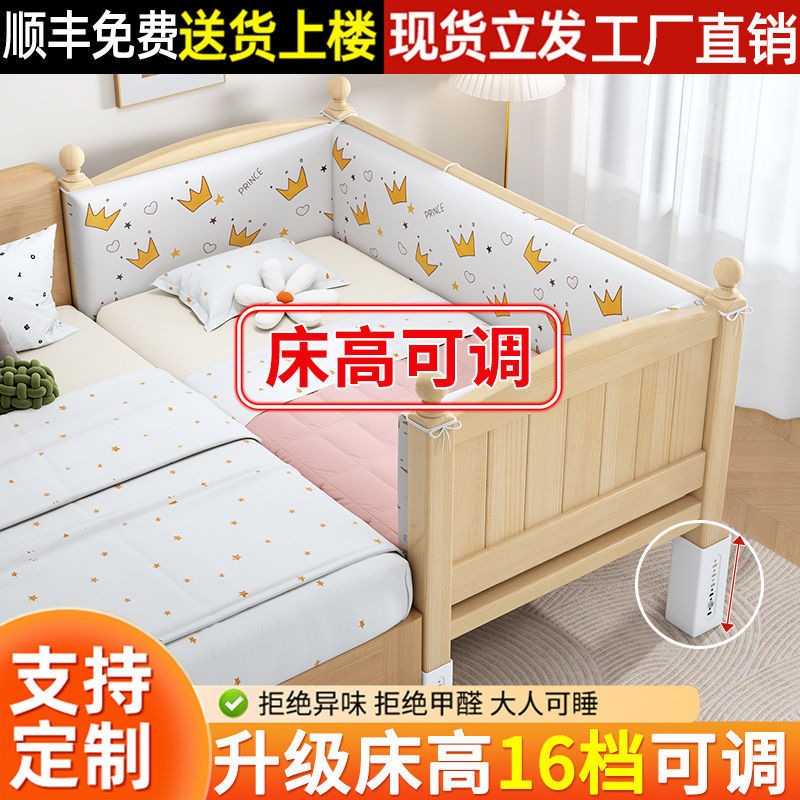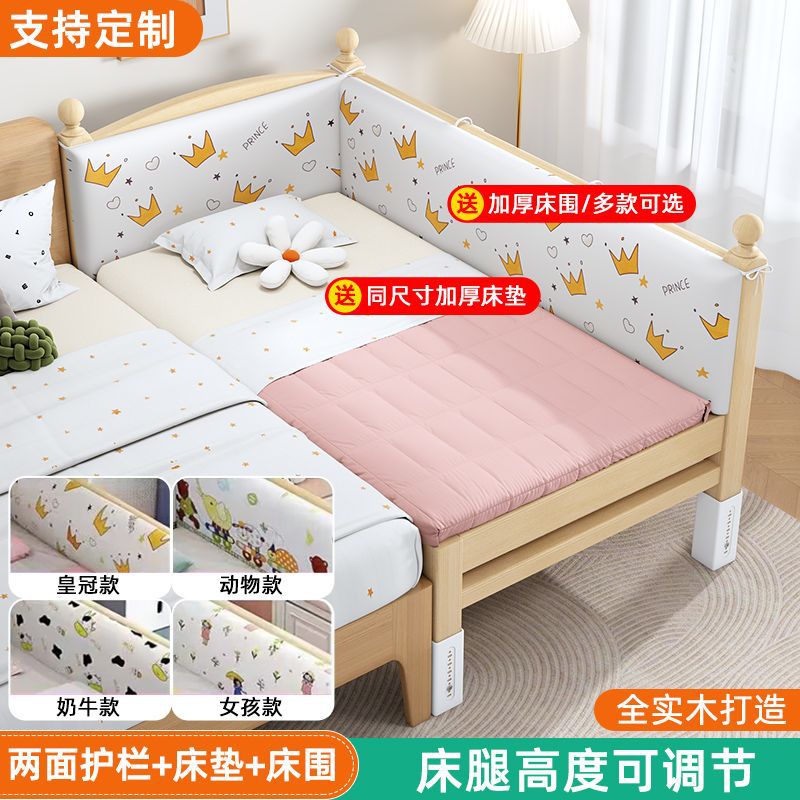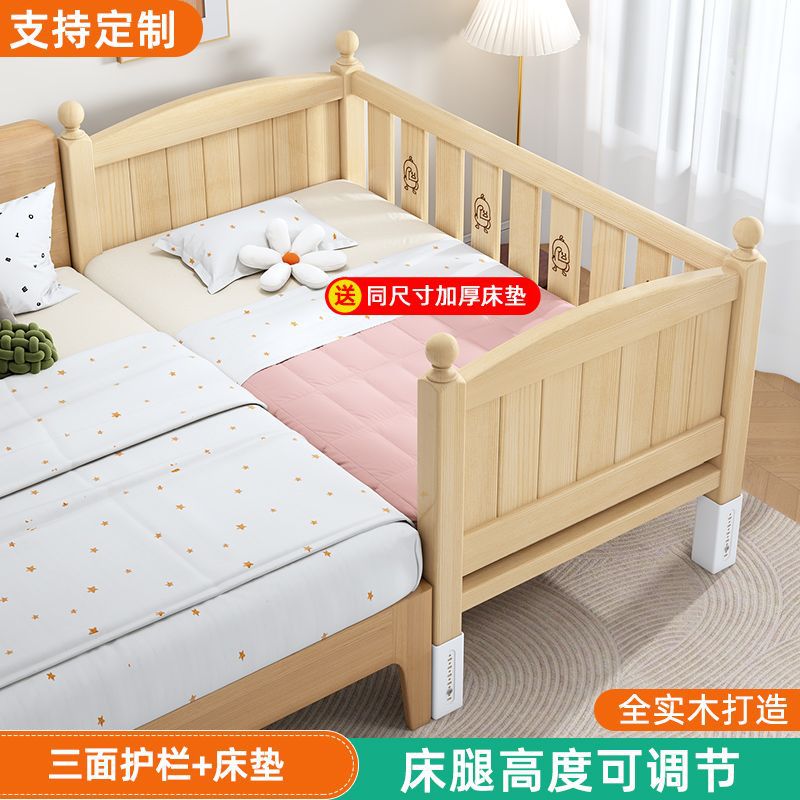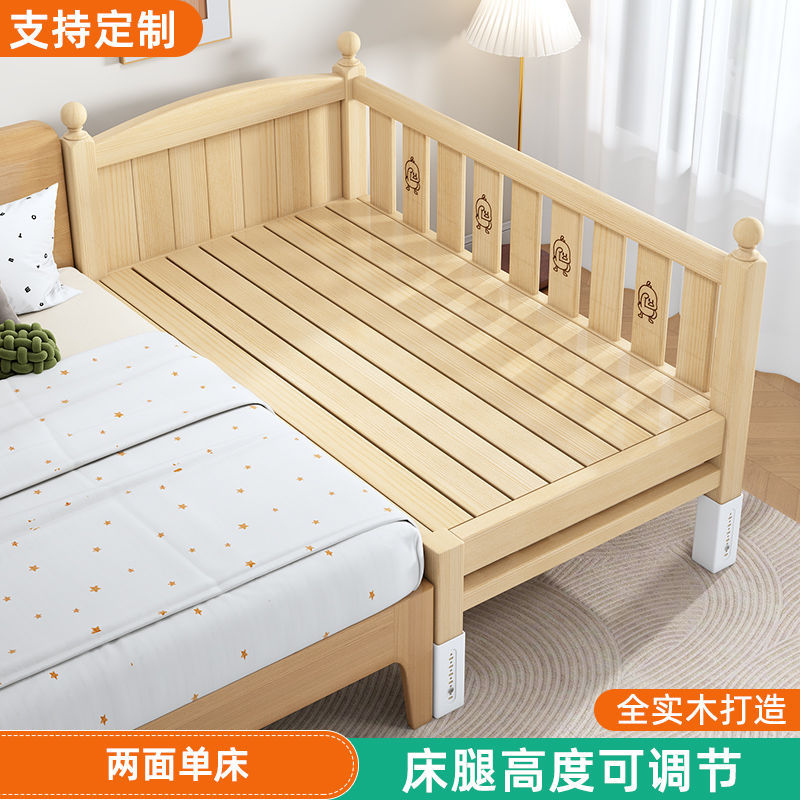 단단한 나무 접합 침대, 넓은 침대 옆, 남녀 아기 싱글 침대, 가드 레일이 있는 어린이 침대, 조절 가능한 유아용 침대