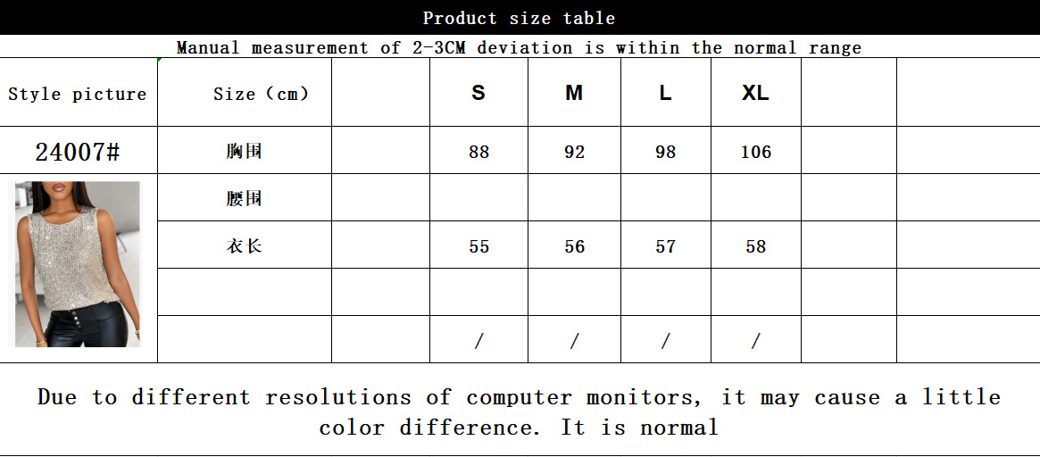 2025 Amazon eBay 국경 간 유럽과 미국 여성 통근 스팽글 루즈 라운드 넥 조끼 여성 재고 있음스토어 가기