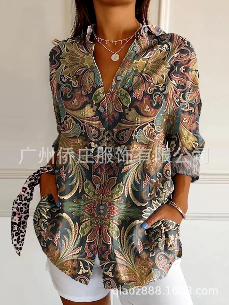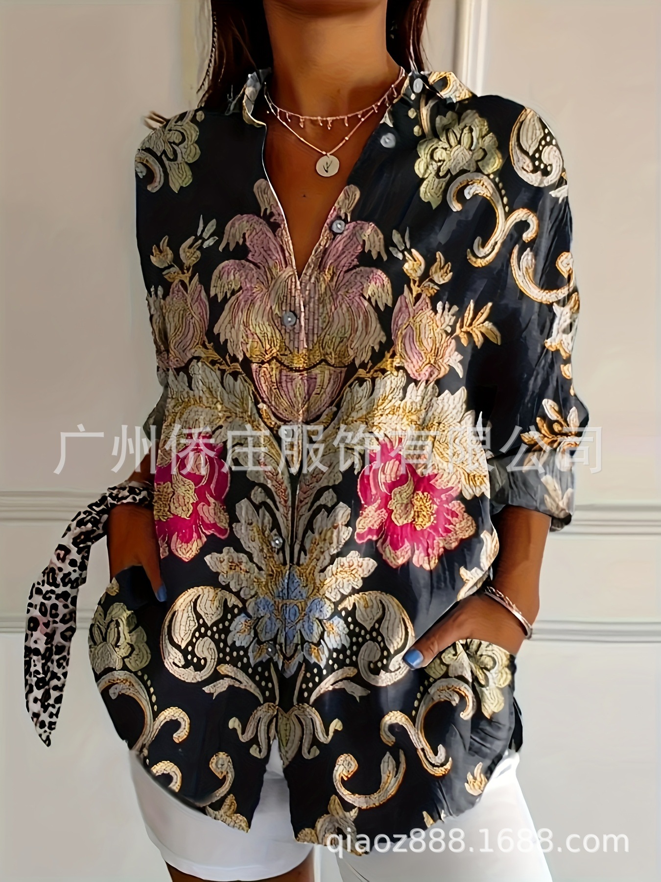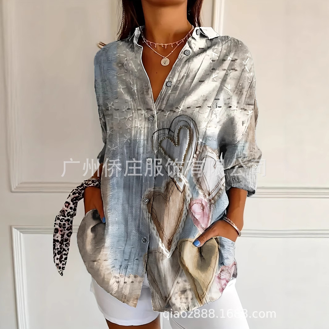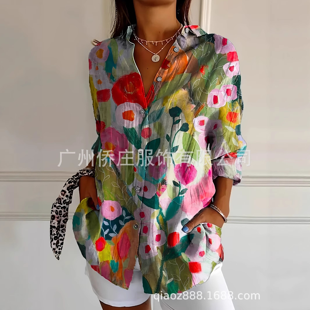 2025 유럽 및 미국 아마존 독립 스테이션 AliExpress 크로스보더 봄 여름 프린트 캐주얼 긴팔 셔츠 입체 프린트스토어 가기
