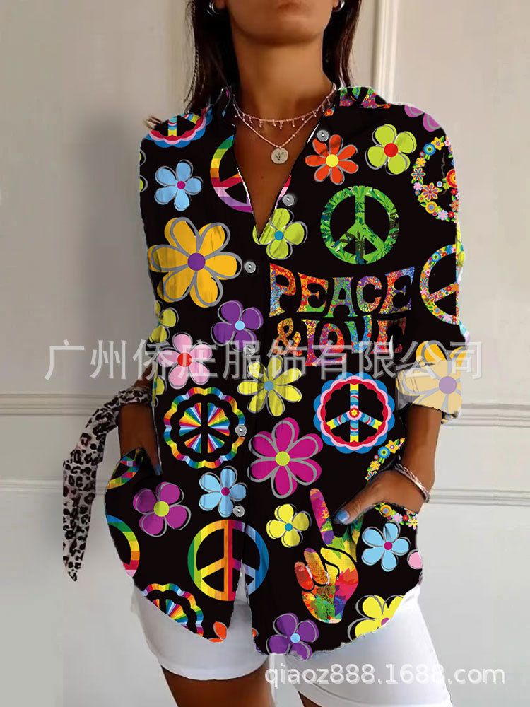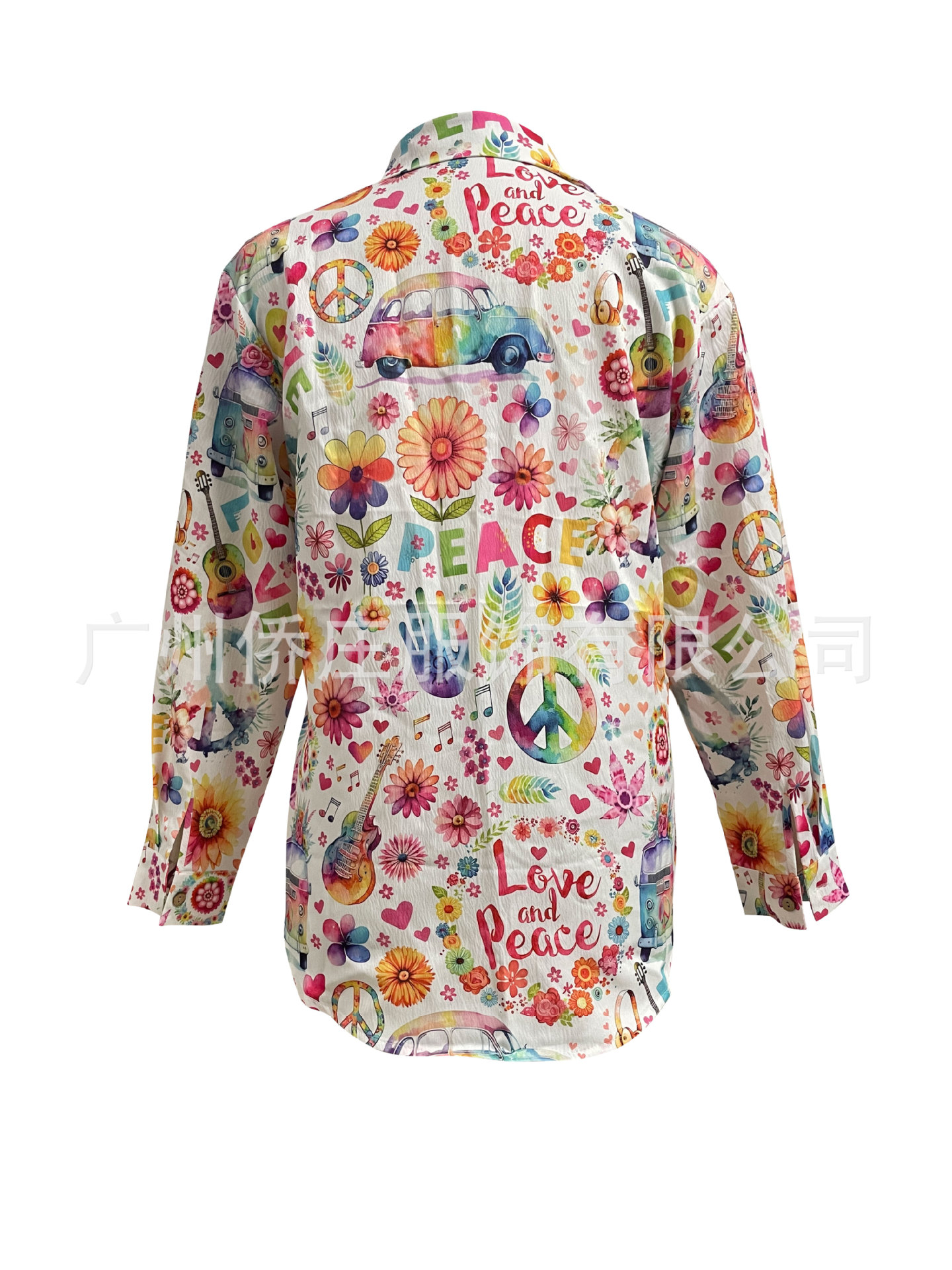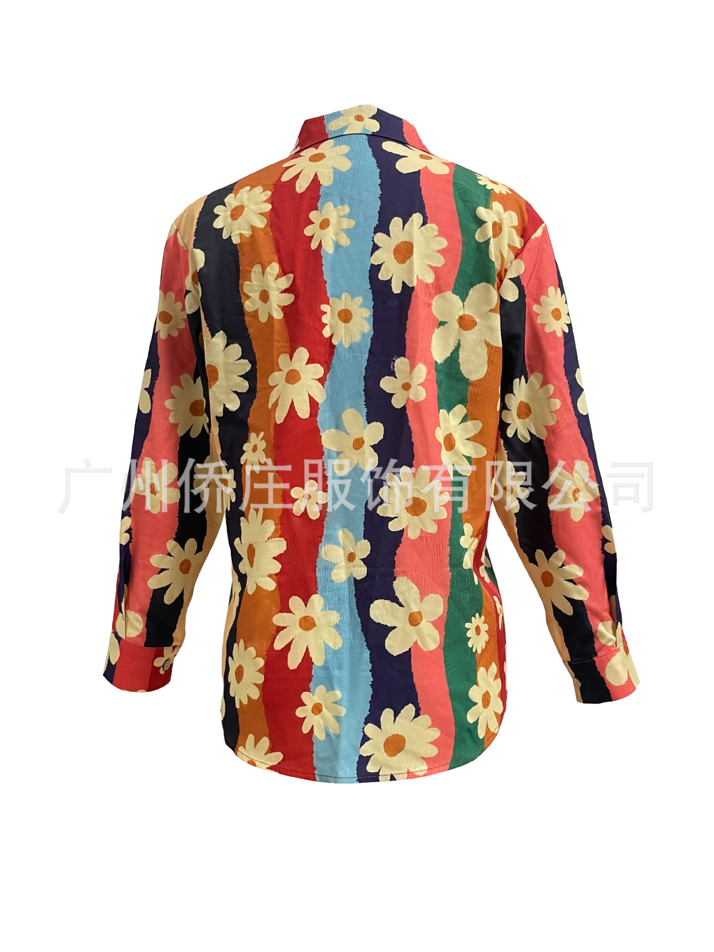 2025 유럽 및 미국 아마존 독립 스테이션 AliExpress 크로스보더 봄 여름 프린트 캐주얼 긴팔 셔츠 입체 프린트