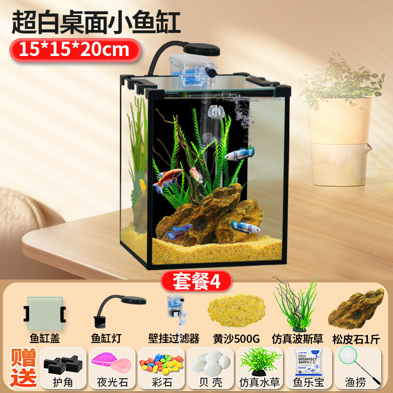 거실 소규모 홈 오피스 에코 게으른 미니 수초 탱크 데스크탑 betta 탱크 물을 교체하지 않는 슈퍼 화이트 탱크