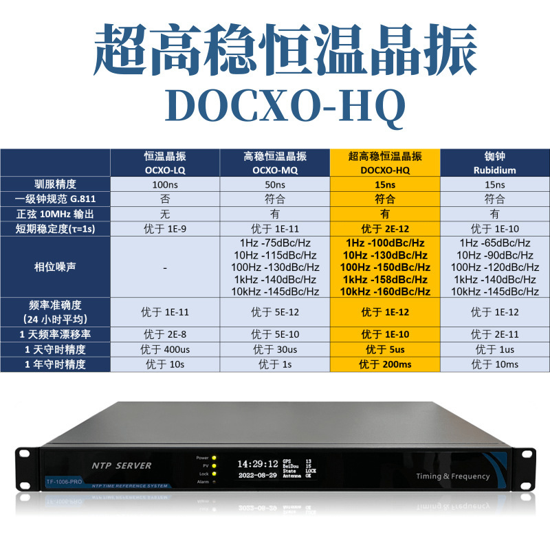 • 듀얼 AC+DC 전원 공급 장치 - 6개의 기가비트 포트 - 매우 안정적인 항온 수정 발진기(DOC-HQ)