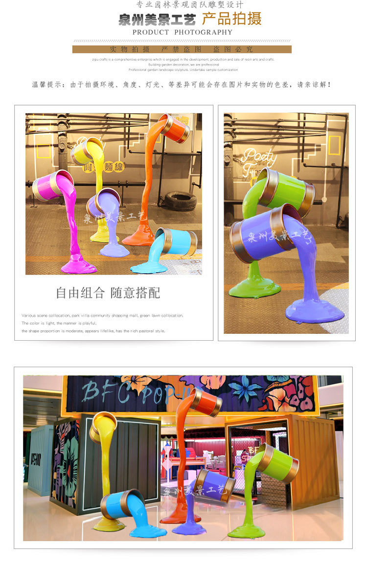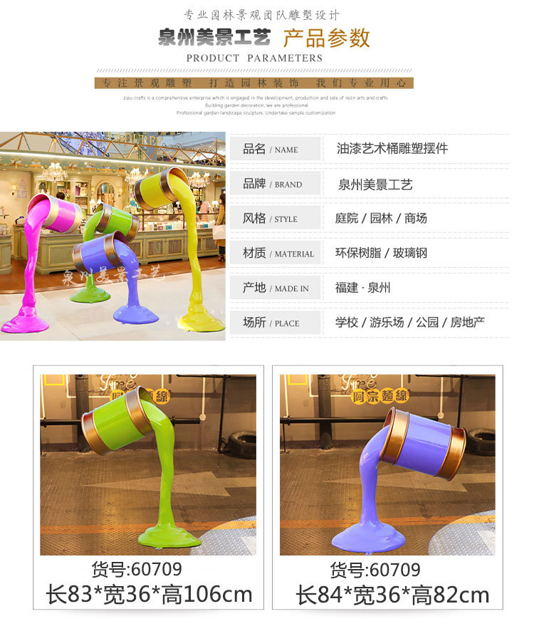 야외 놀이터 페인트 양동이 창조적 인 페인트 양동이 예술 장식 조각 유리 섬유 강화 플라스틱 장식스토어 가기