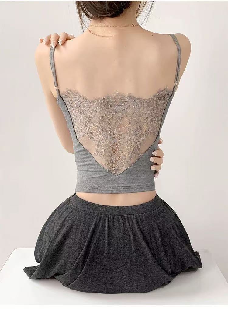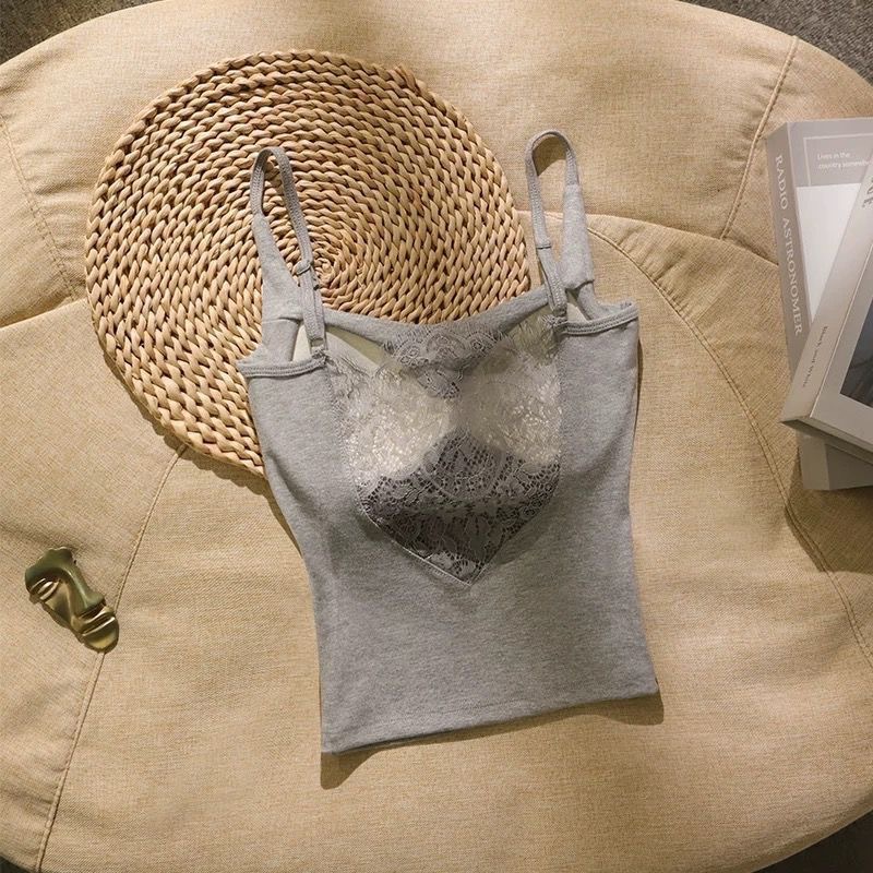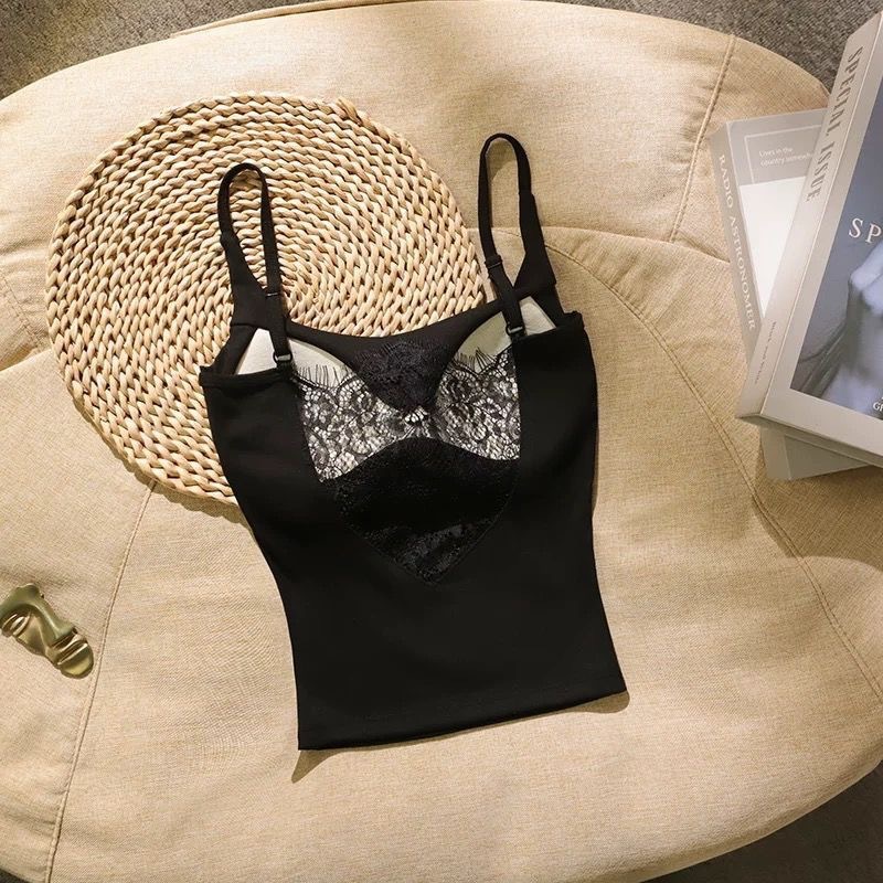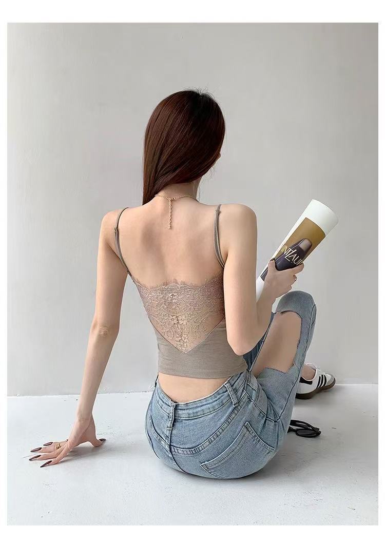 가슴 패드가 있는 슈퍼 슬림 레이스 백 베스트, 레이스 스플라이싱 백리스 슬링, 슬림핏 아우터 탑, 여성 속옷스토어 가기