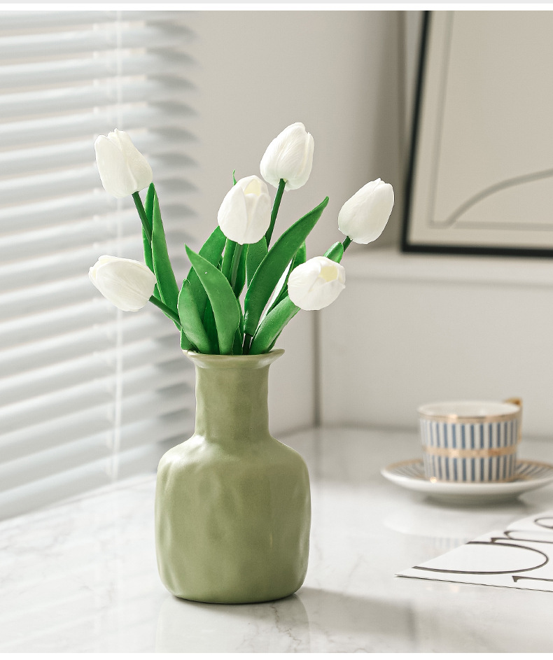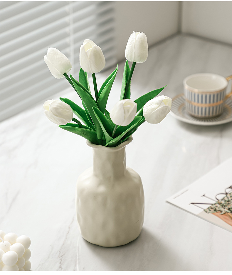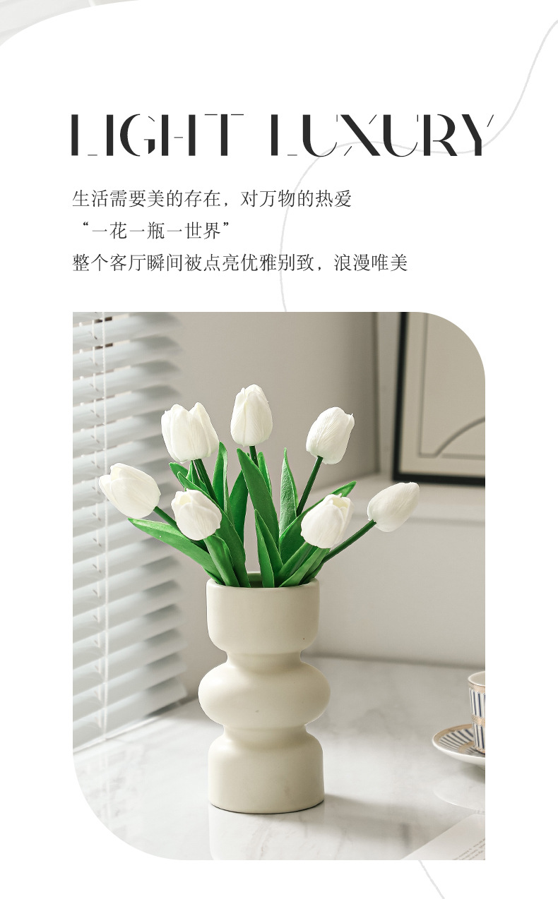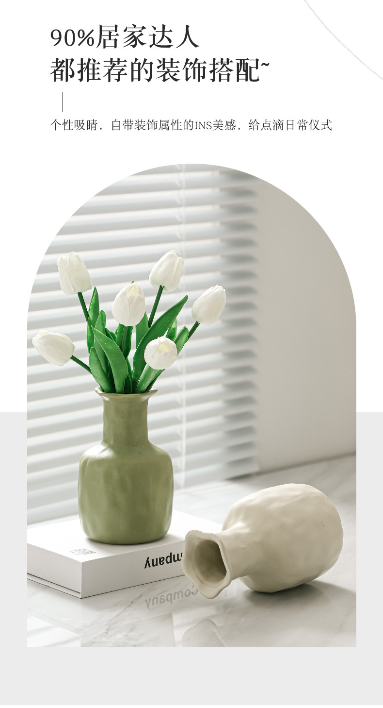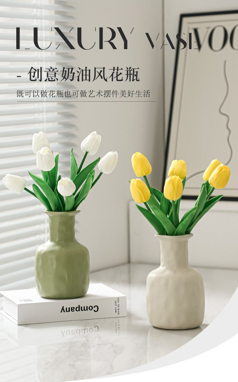 인터넷 연예인 크림 스타일 세라믹 작은 꽃병 튤립 꽃꽂이 시뮬레이션 꽃 용기 거실 침실 틈새 고급 장식