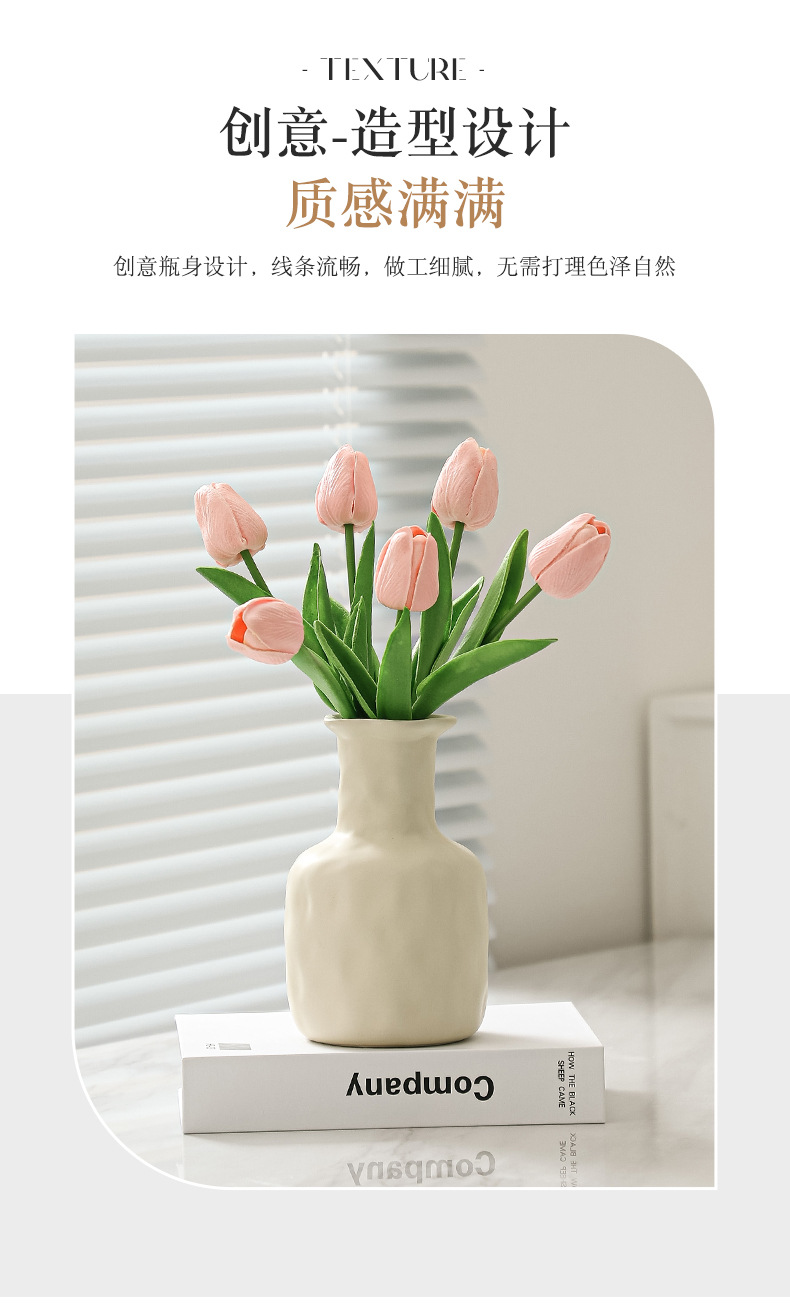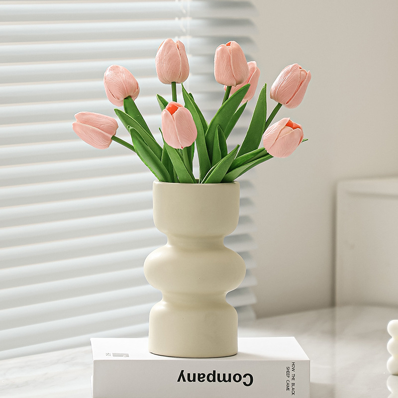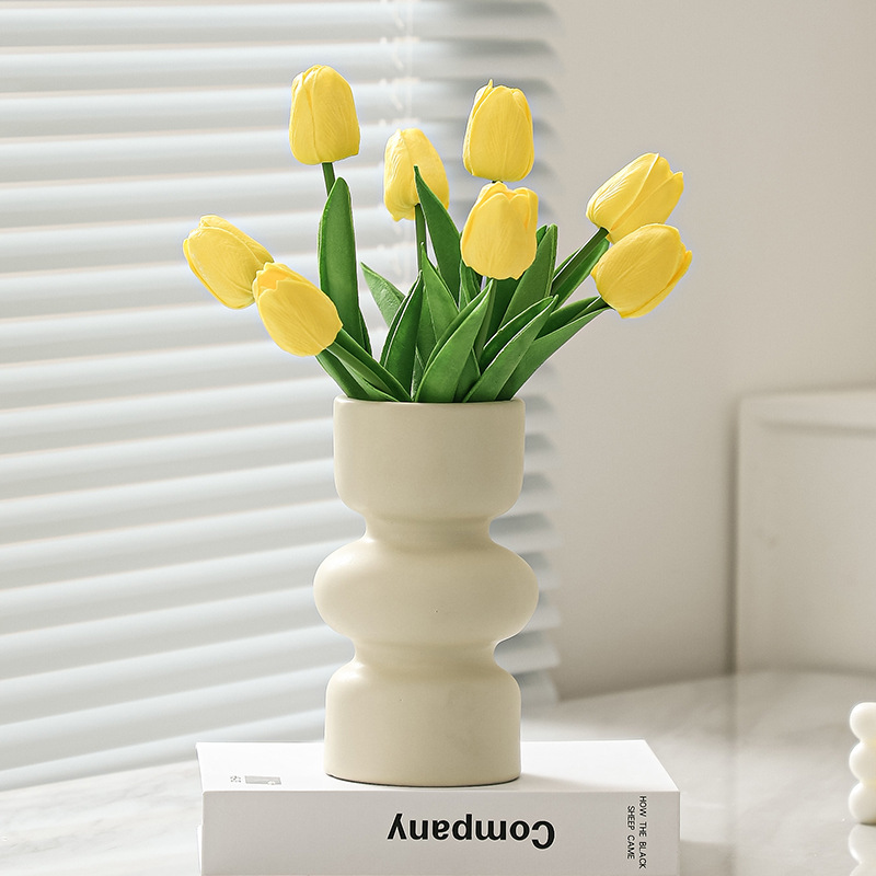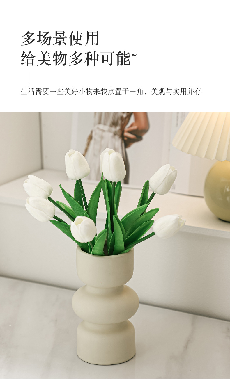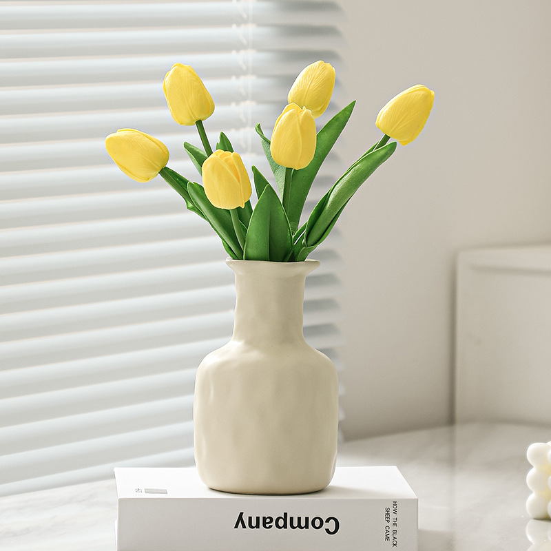 인터넷 연예인 크림 스타일 세라믹 작은 꽃병 튤립 꽃꽂이 시뮬레이션 꽃 용기 거실 침실 틈새 고급 장식