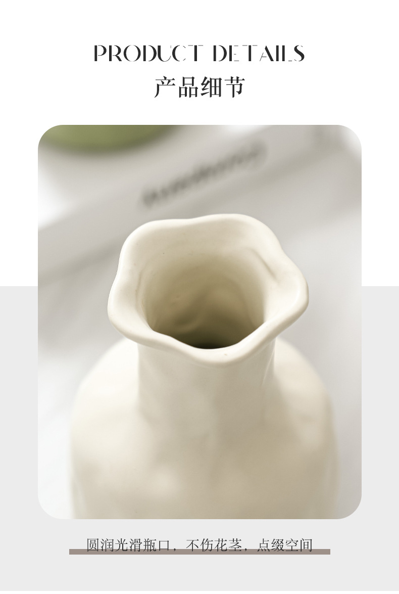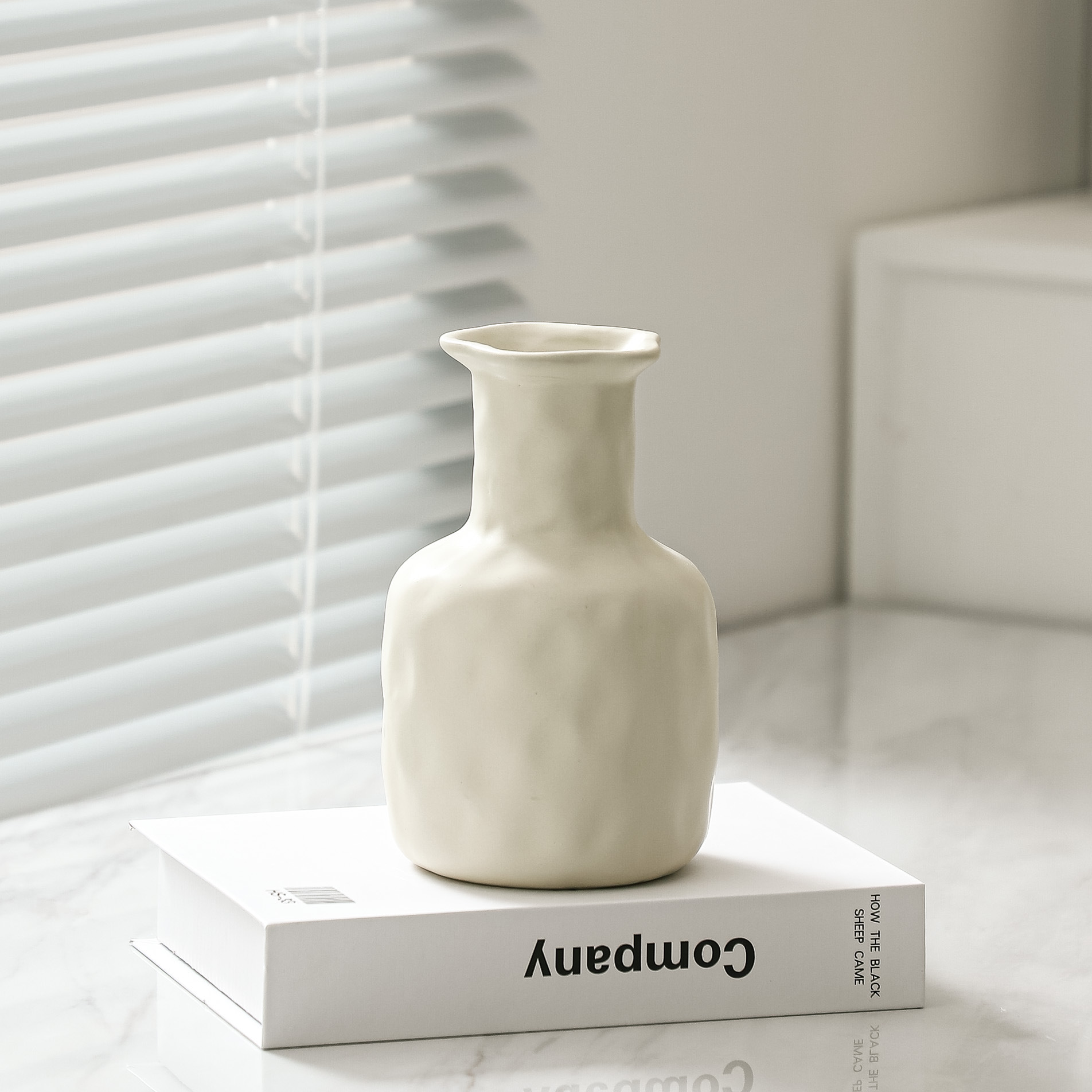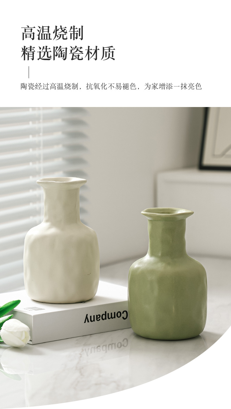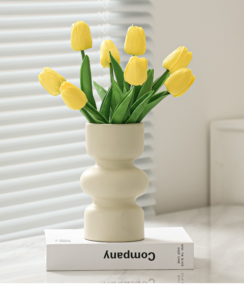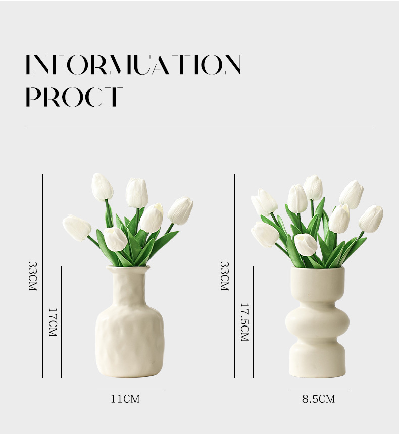 인터넷 연예인 크림 스타일 세라믹 작은 꽃병 튤립 꽃꽂이 시뮬레이션 꽃 용기 거실 침실 틈새 고급 장식