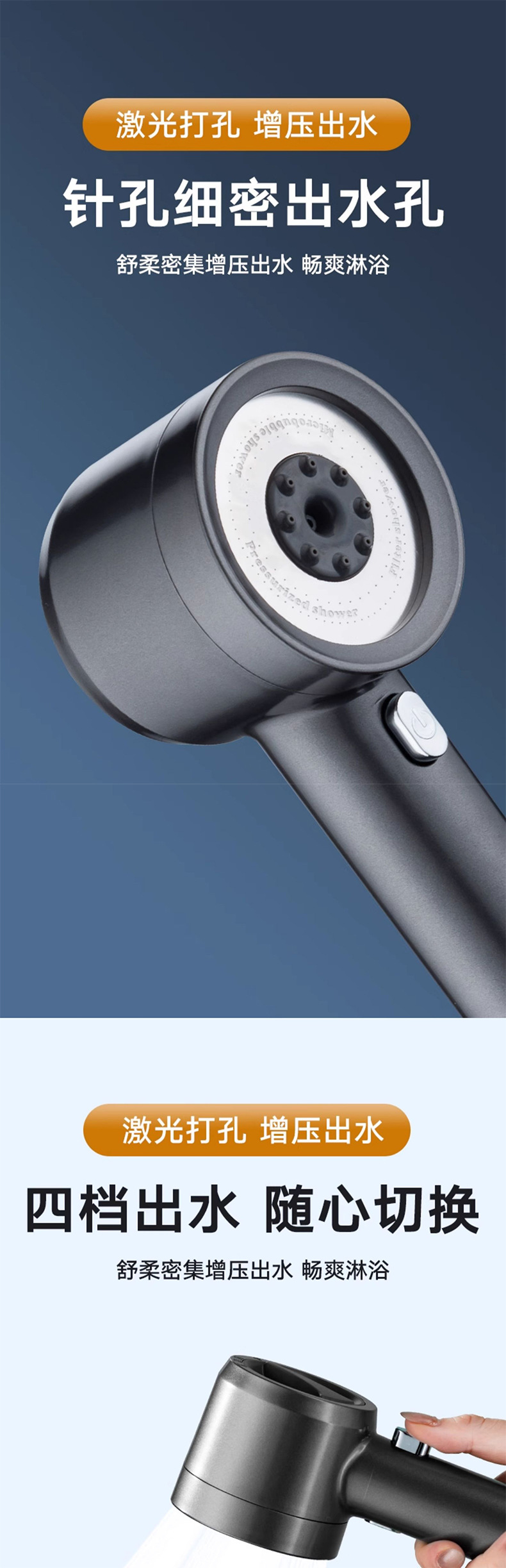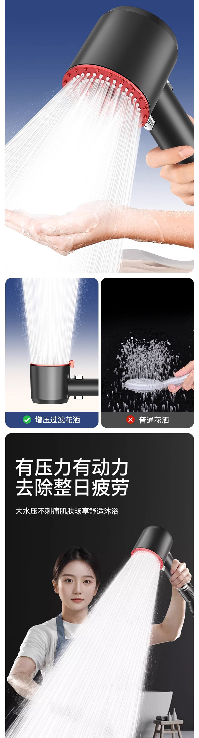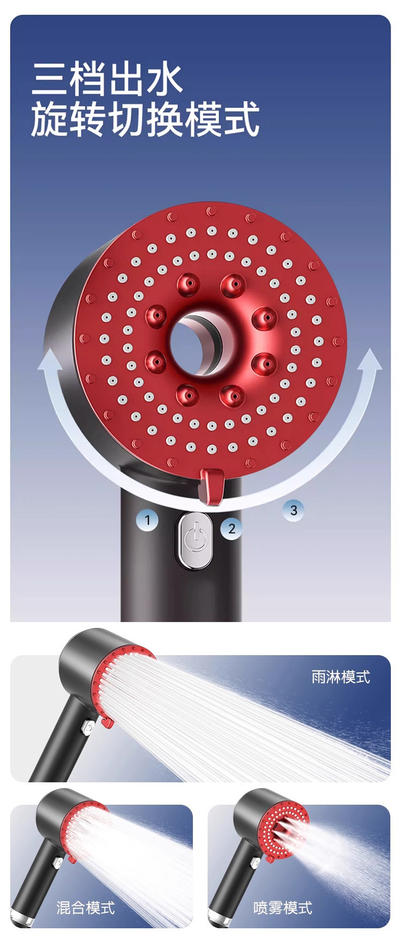 • C 스타일 그레이 레드 슈퍼차지 샤워 헤드
