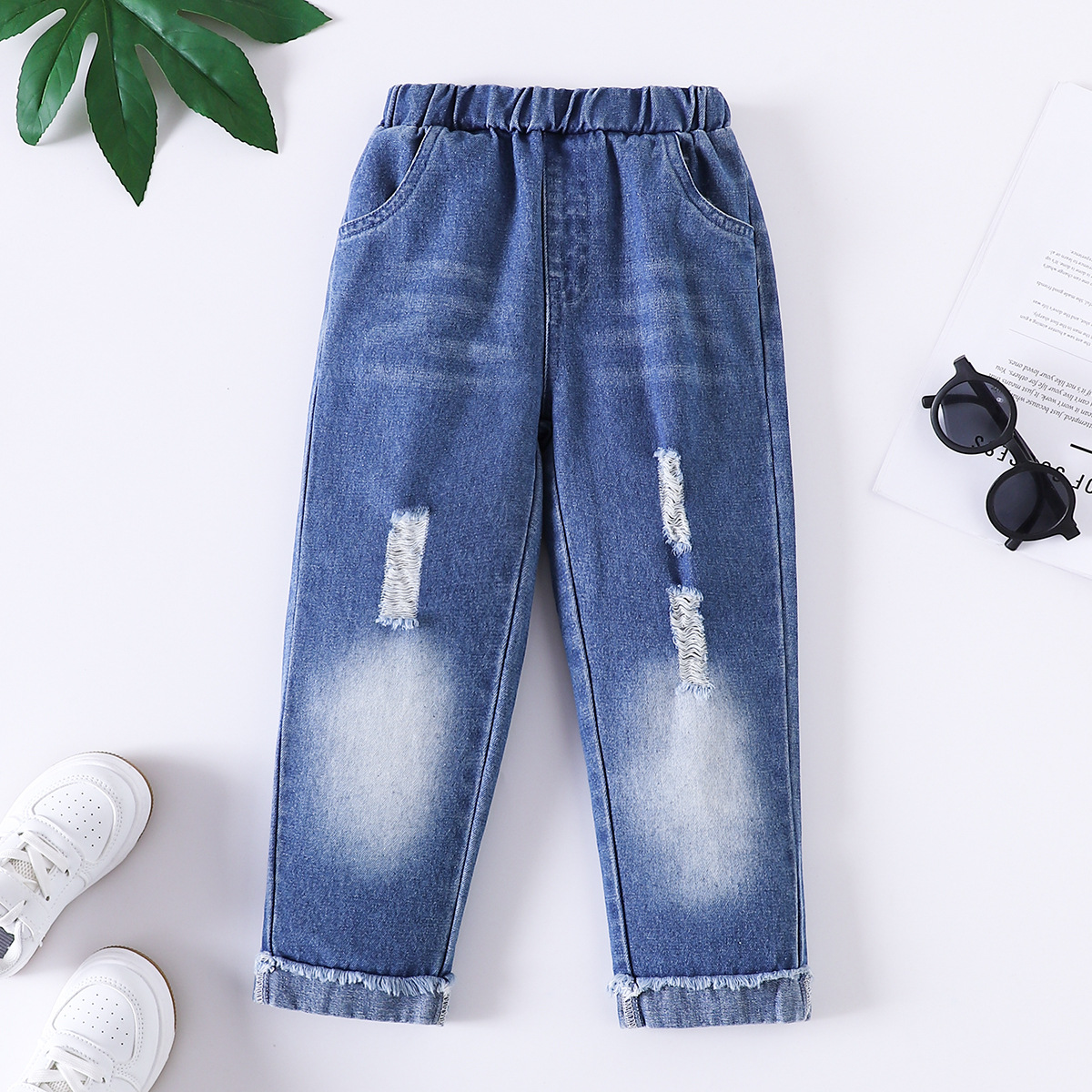 여아 찢어진 청바지 2025 봄 가을 신상 아동 캐주얼 바지 봄 중소형 아동 바지 트렌드