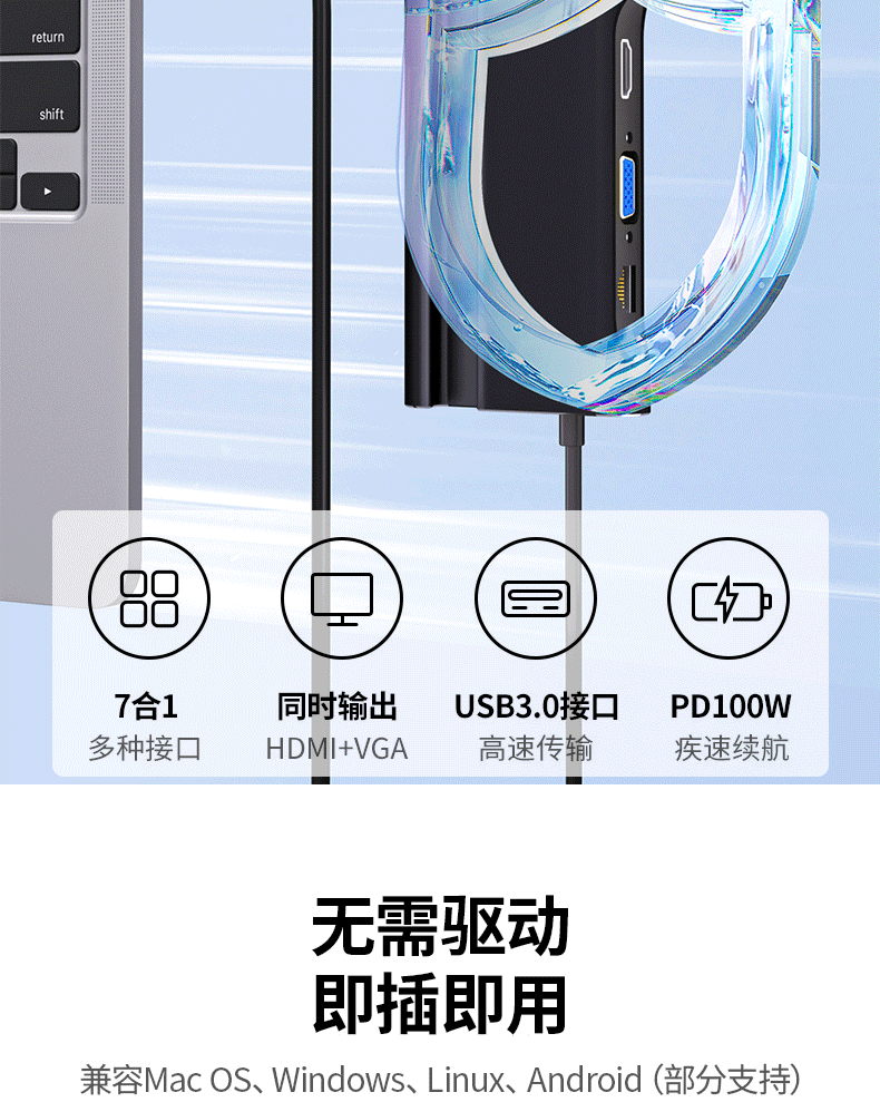 USB 확장기 허브 컨버터 노트북 도킹 스테이션 휴대폰 태블릿 타입C 도킹 스테이션 가볍고 휴대 가능