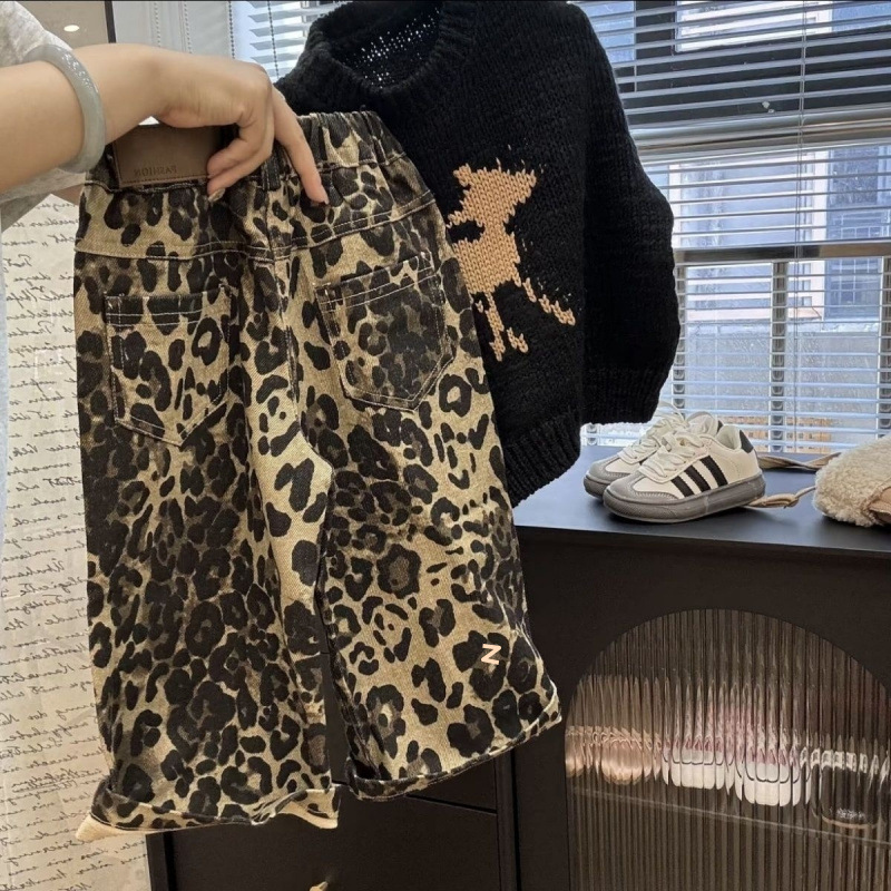 새로운 소년 청바지 봄과 가을 2025 새로운 한국 느슨한 레오파드 무늬 캐주얼 바지 가을 어린이 가을 바지스토어 가기