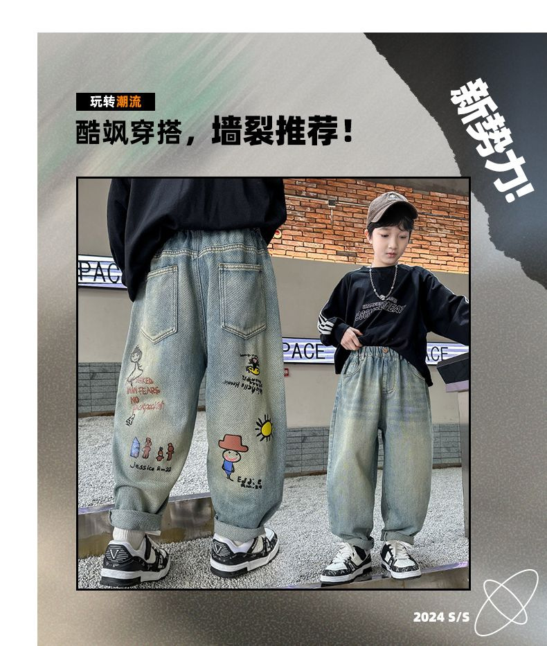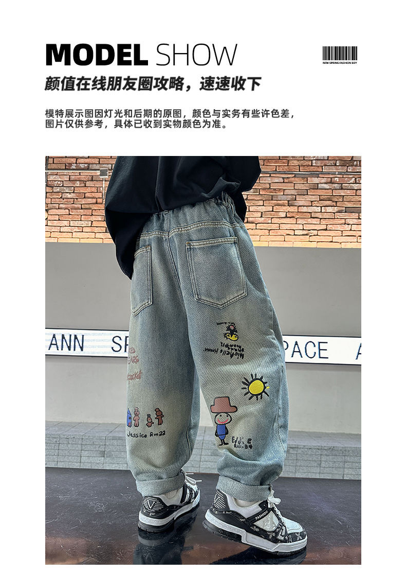 남아 청바지 봄, 가을 아동 바지 남아 패셔너블 루즈 바지 2025 신상 아동복 중대형 아동 바지스토어 가기