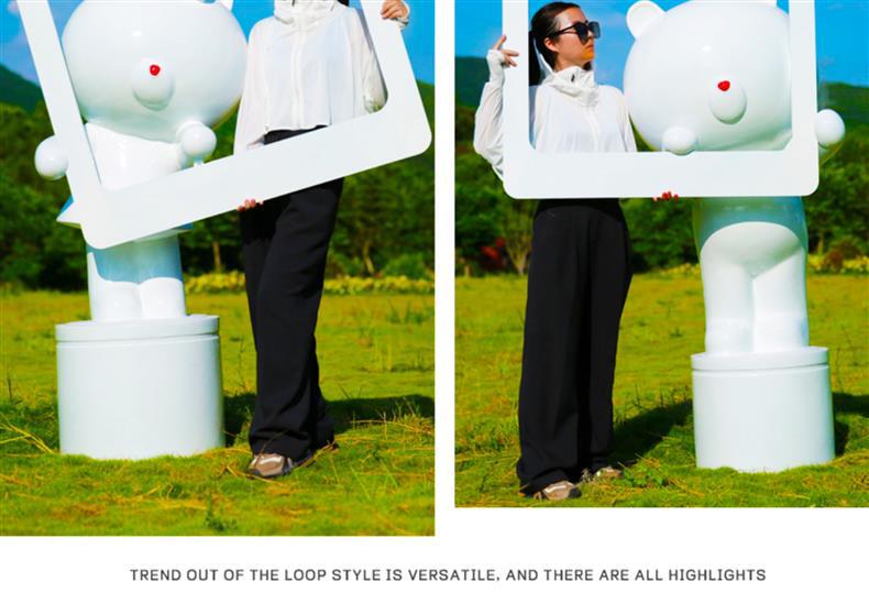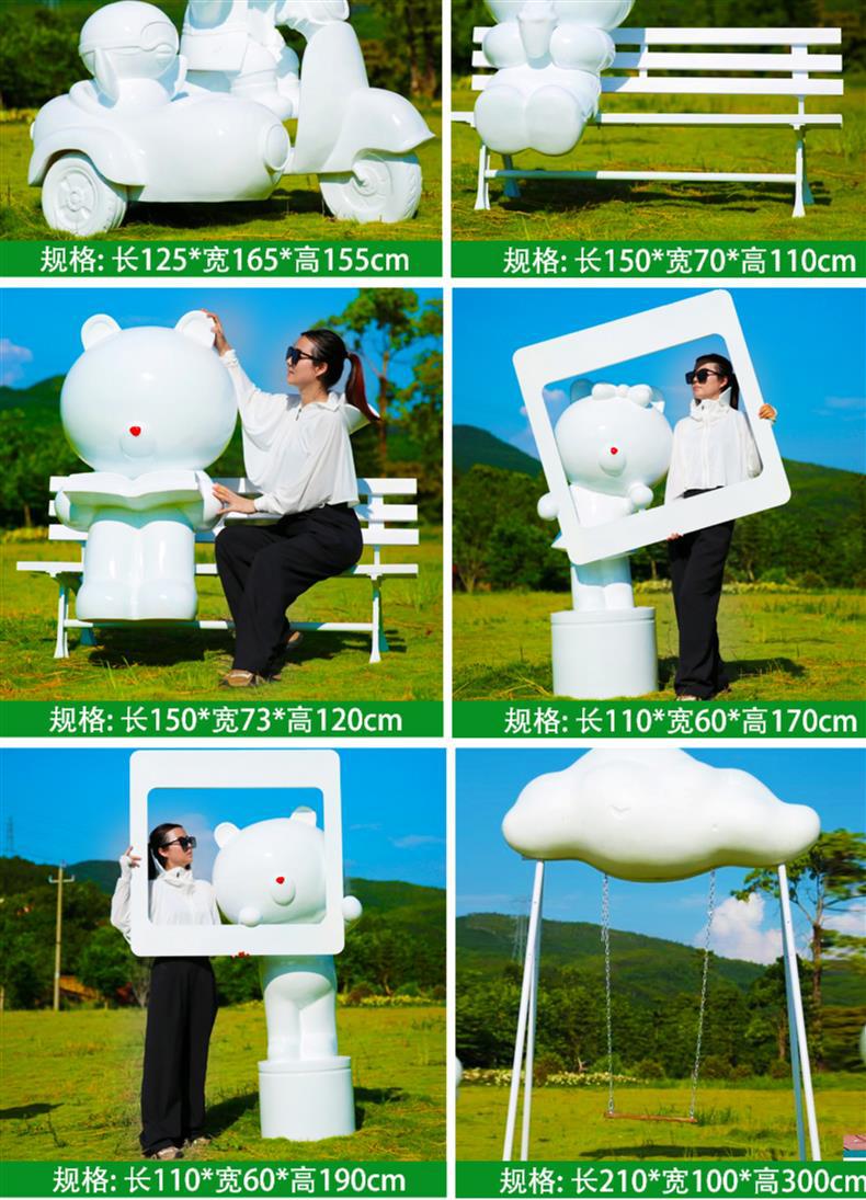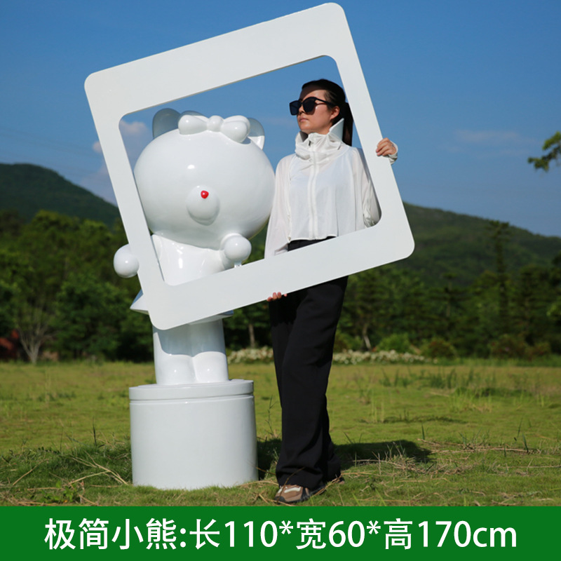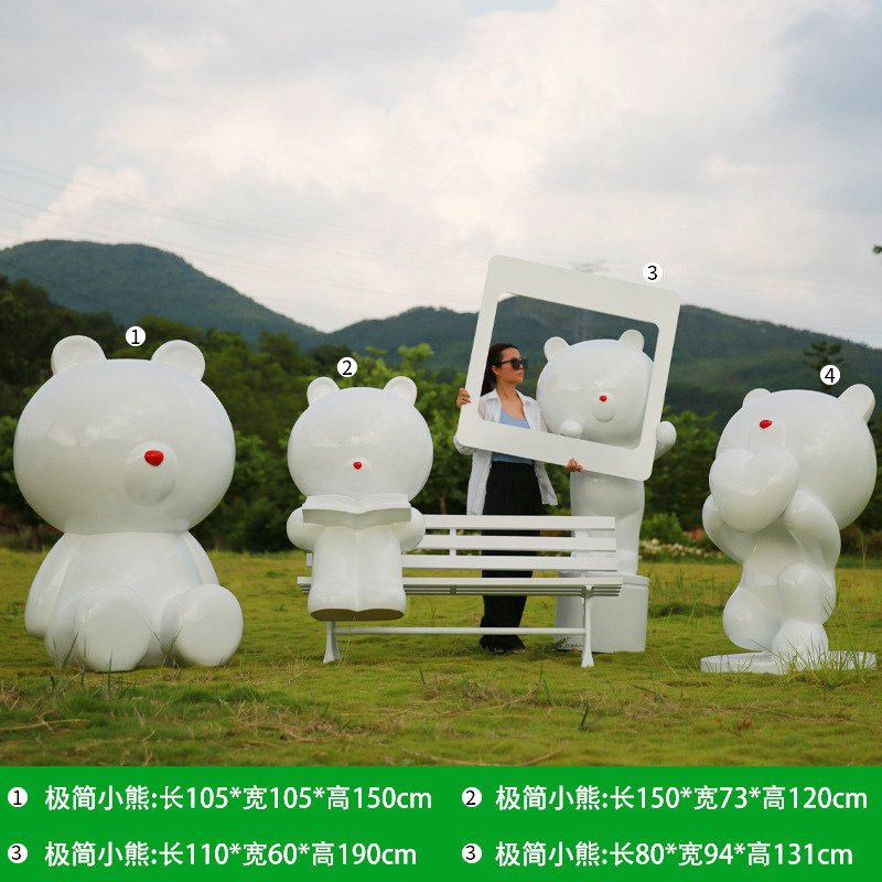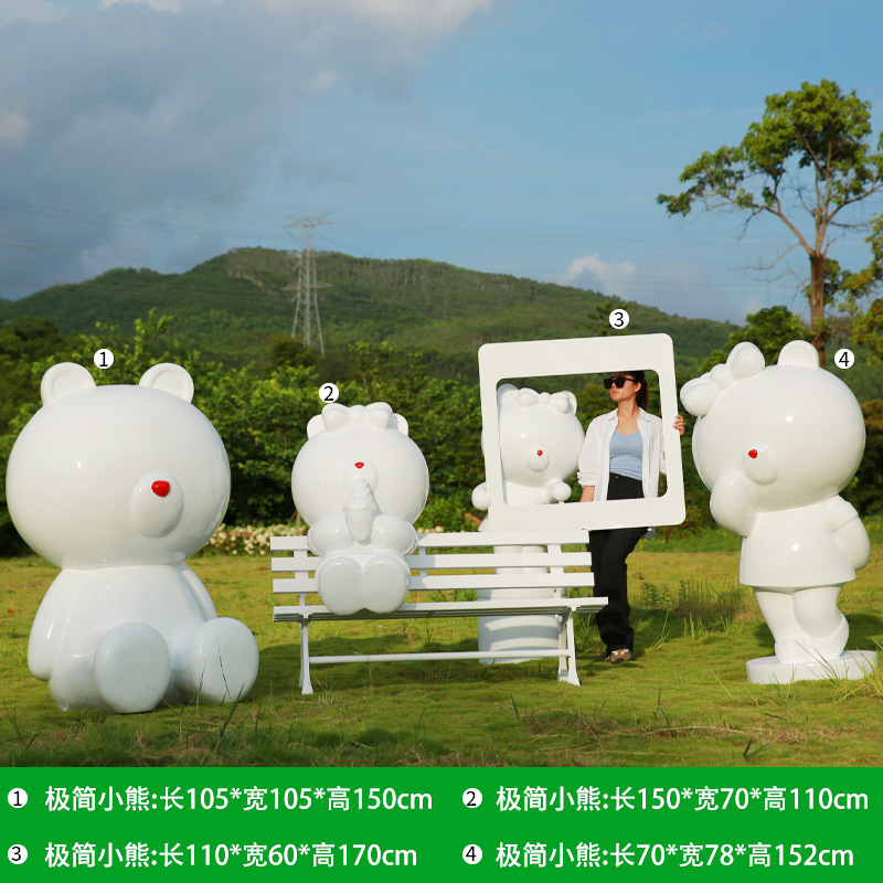 만화 다크 브라운 곰 유리 섬유 강화 플라스틱 조각 야외 쇼핑몰 영업 부서 잔디 경치 명소 사진 카드 큰 장식품