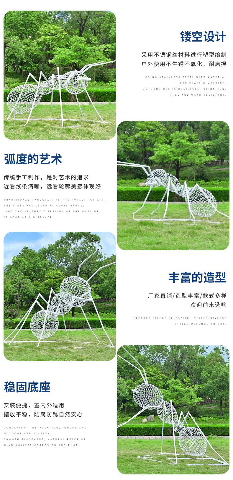 풍경 스테인레스 스틸 빈 곤충 개미 조각 야외 공원 부동산 잔디 대형 장식 장식품