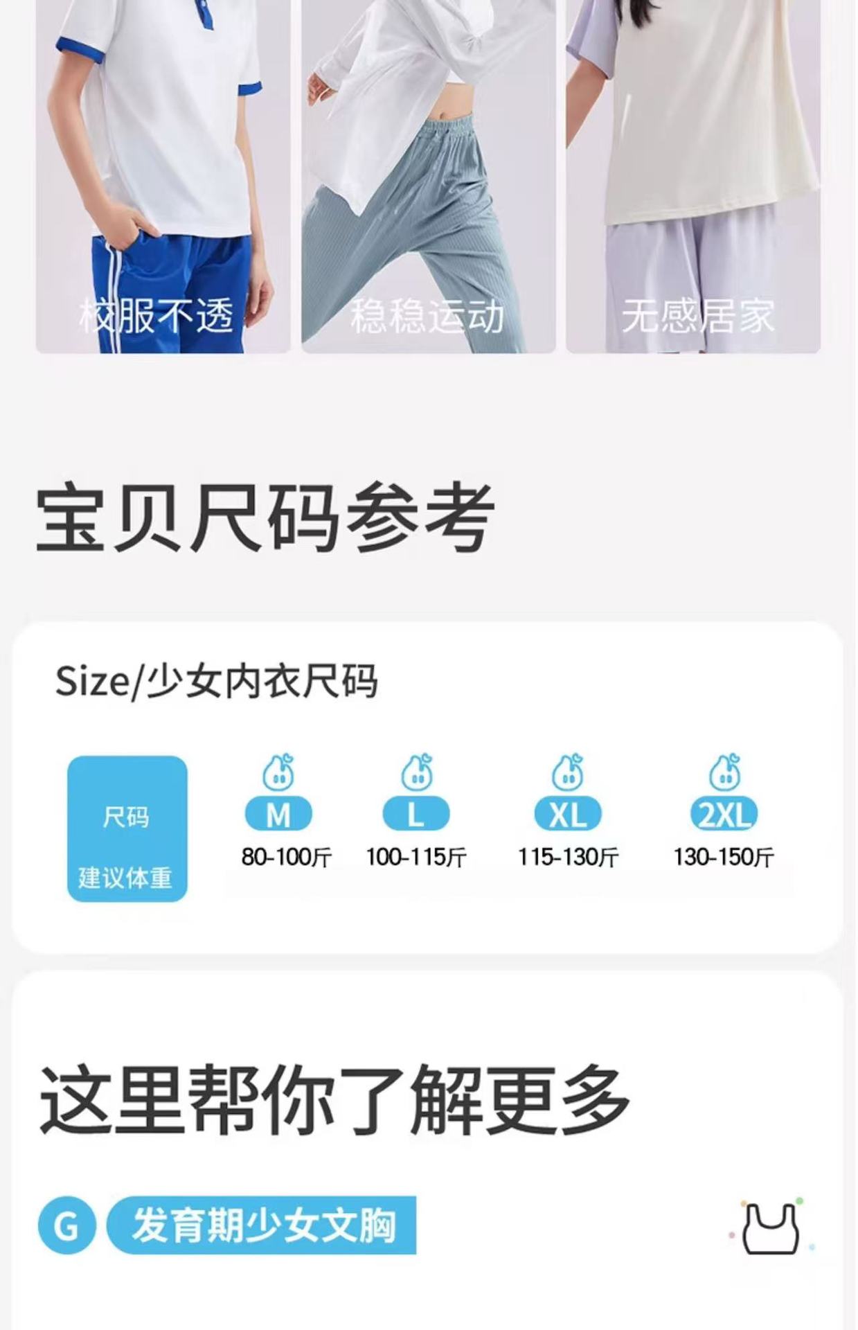 여아브라, 고등학생, 청소년발달기 속옷, 여성용 와이어프리브라, 후면버튼, 중학생 스포츠조끼스토어 가기