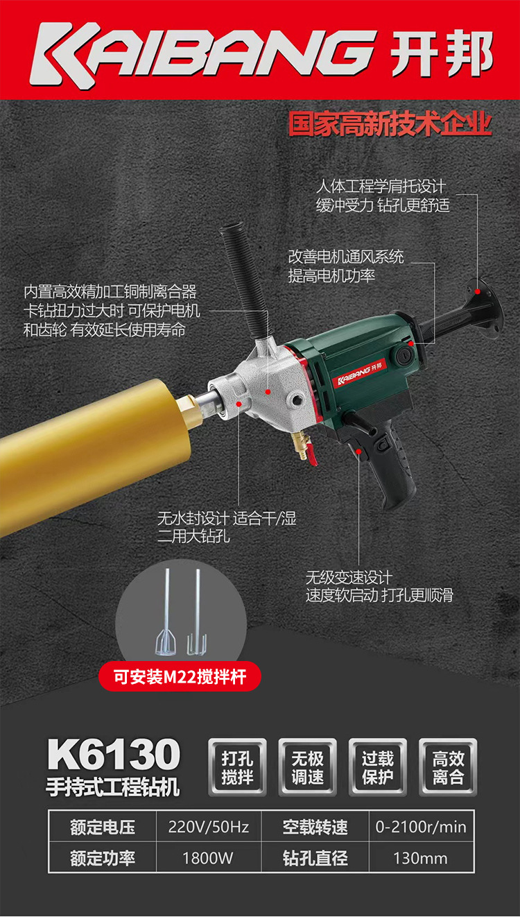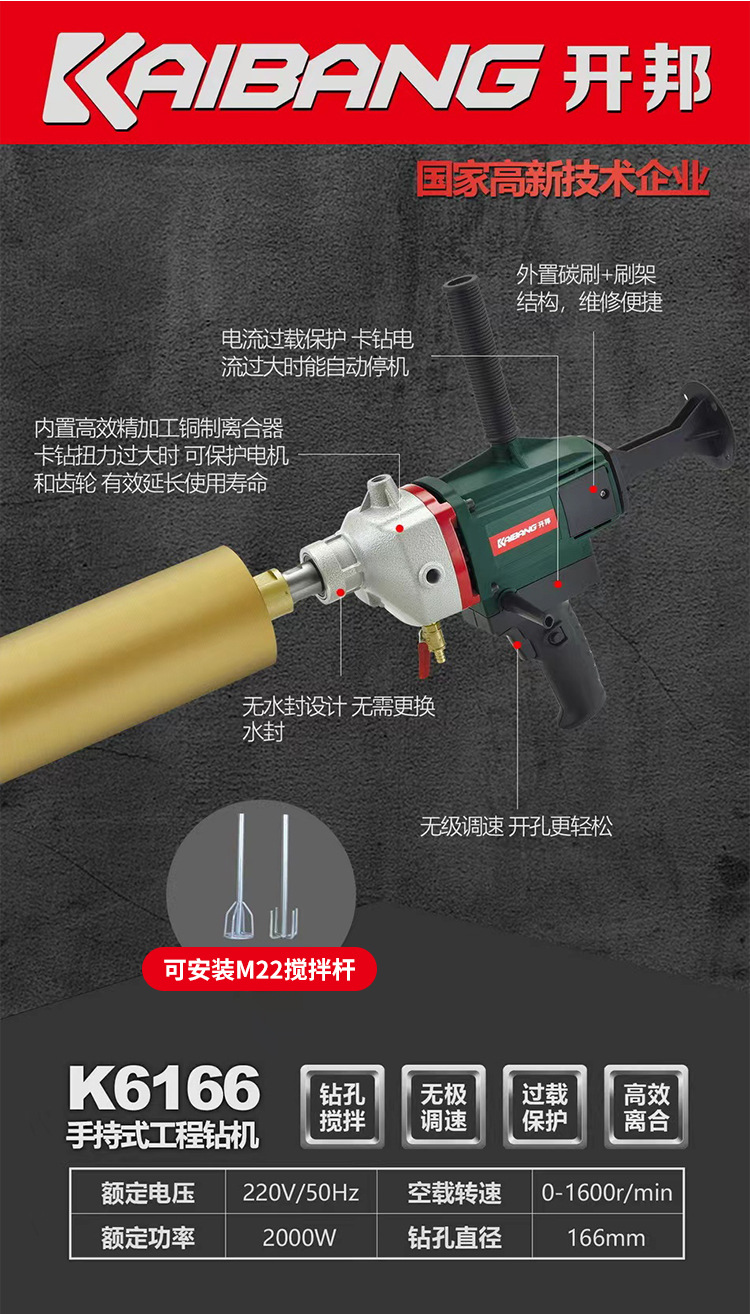 K6168 워터 드릴 머신 콘크리트 에어컨 드릴링 머신 고출력 드릴링 머신 이중 목적 브래킷 드릴링 도매스토어 가기