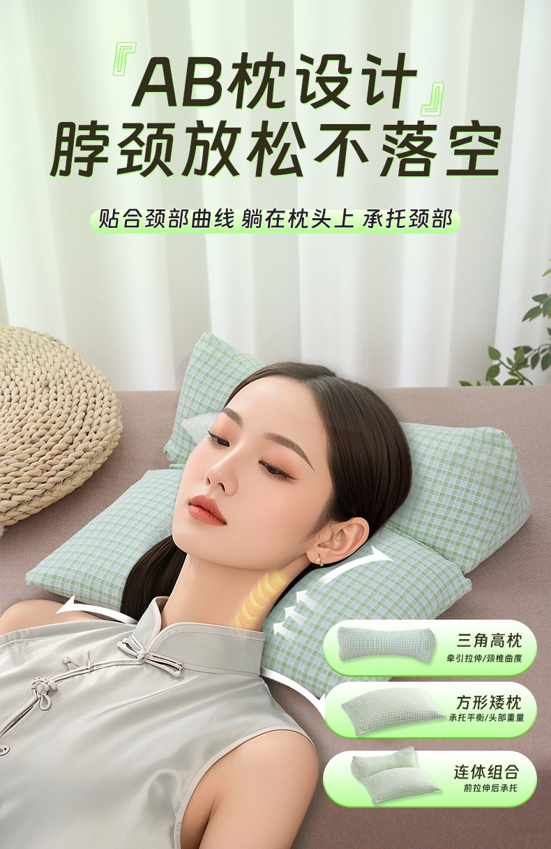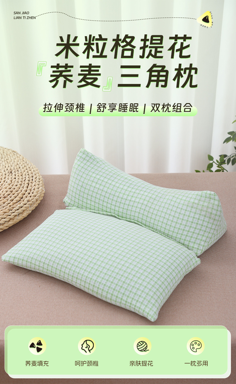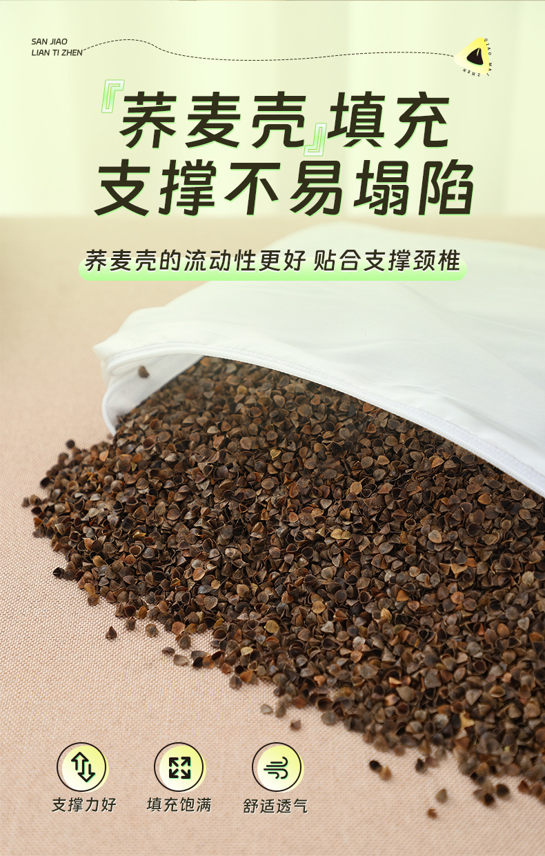 메밀껍질 일체형 베개 가정용 경추 삼각 베개 면과 쑥 조합 베개 다기능 목 보호 베개 메밀 베개