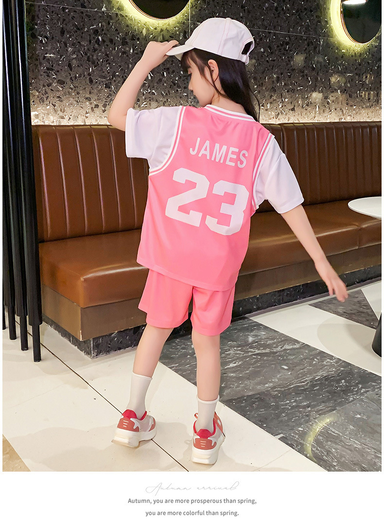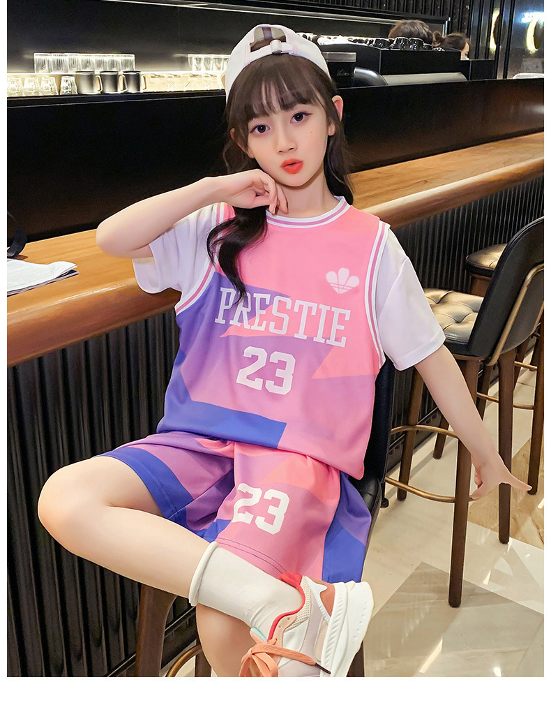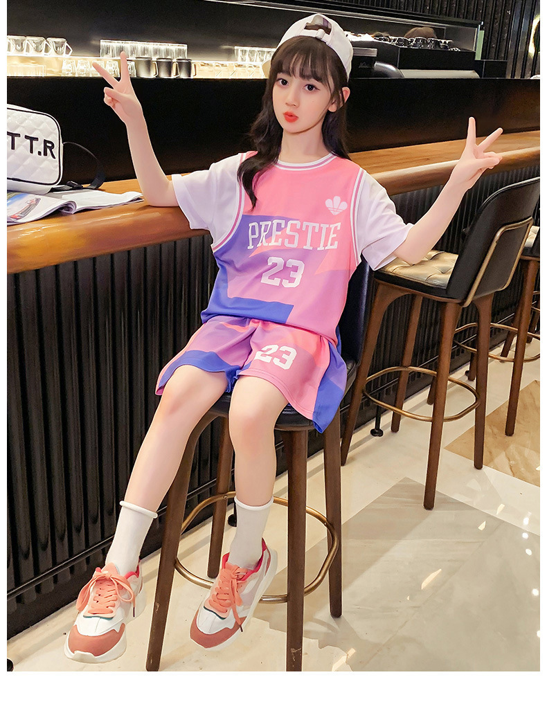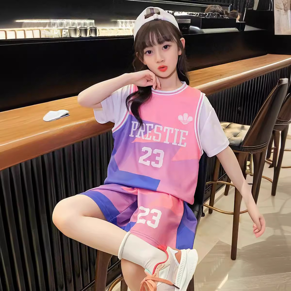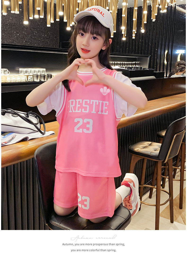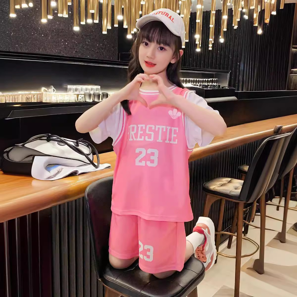 여자 스포츠 정장 여름 옷 2025 새로운 반바지 어린이 여름 봄 옷 큰 아동 의류 여자 빠른 건조 농구 유니폼