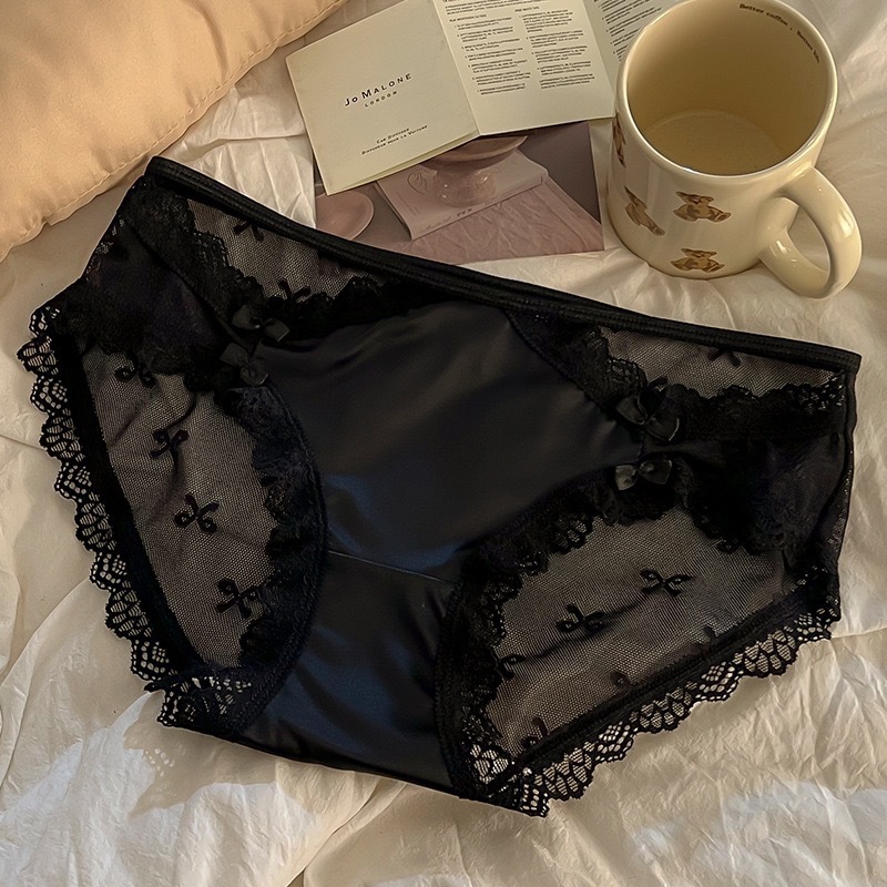 순수한 섹시한 반 반투명 레이스 가장자리 활 속옷 여성의 높은 탄성 편안한 코튼 크로치 여성의 프랑스 스타일 브리프스토어 가기