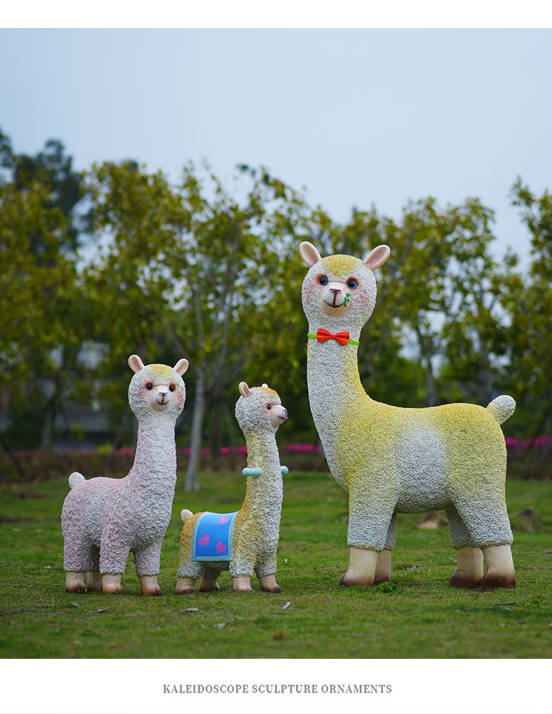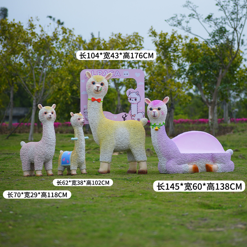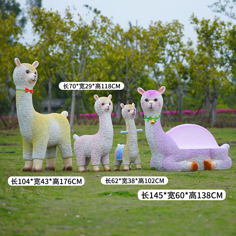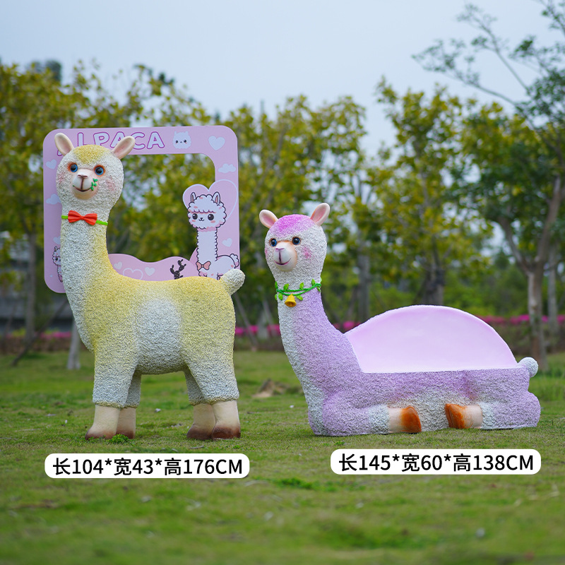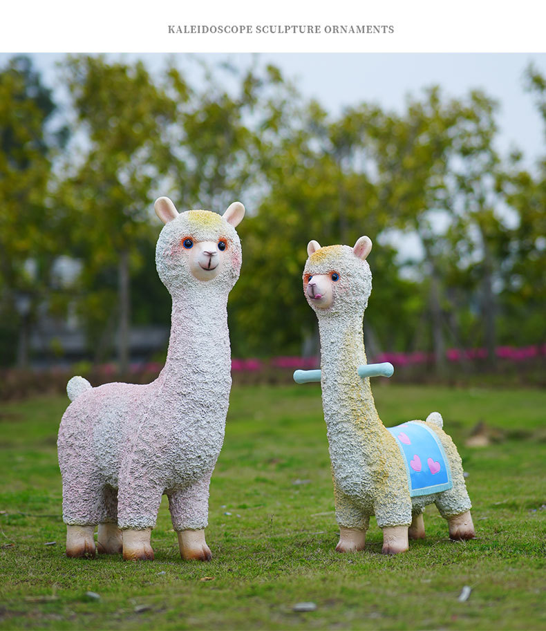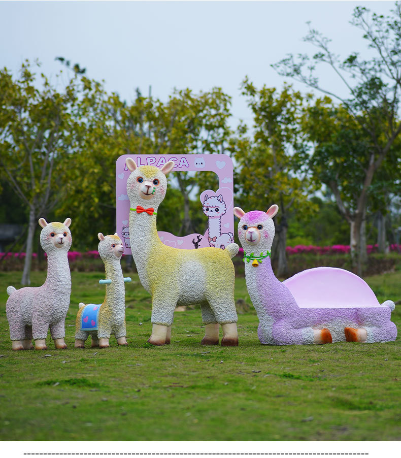 시뮬레이션 동물 좌석, 다채로운 풀 진흙 말, 알파카, 유리 섬유 장식품, 야외 공원 잔디 조각, 지역 장식스토어 가기