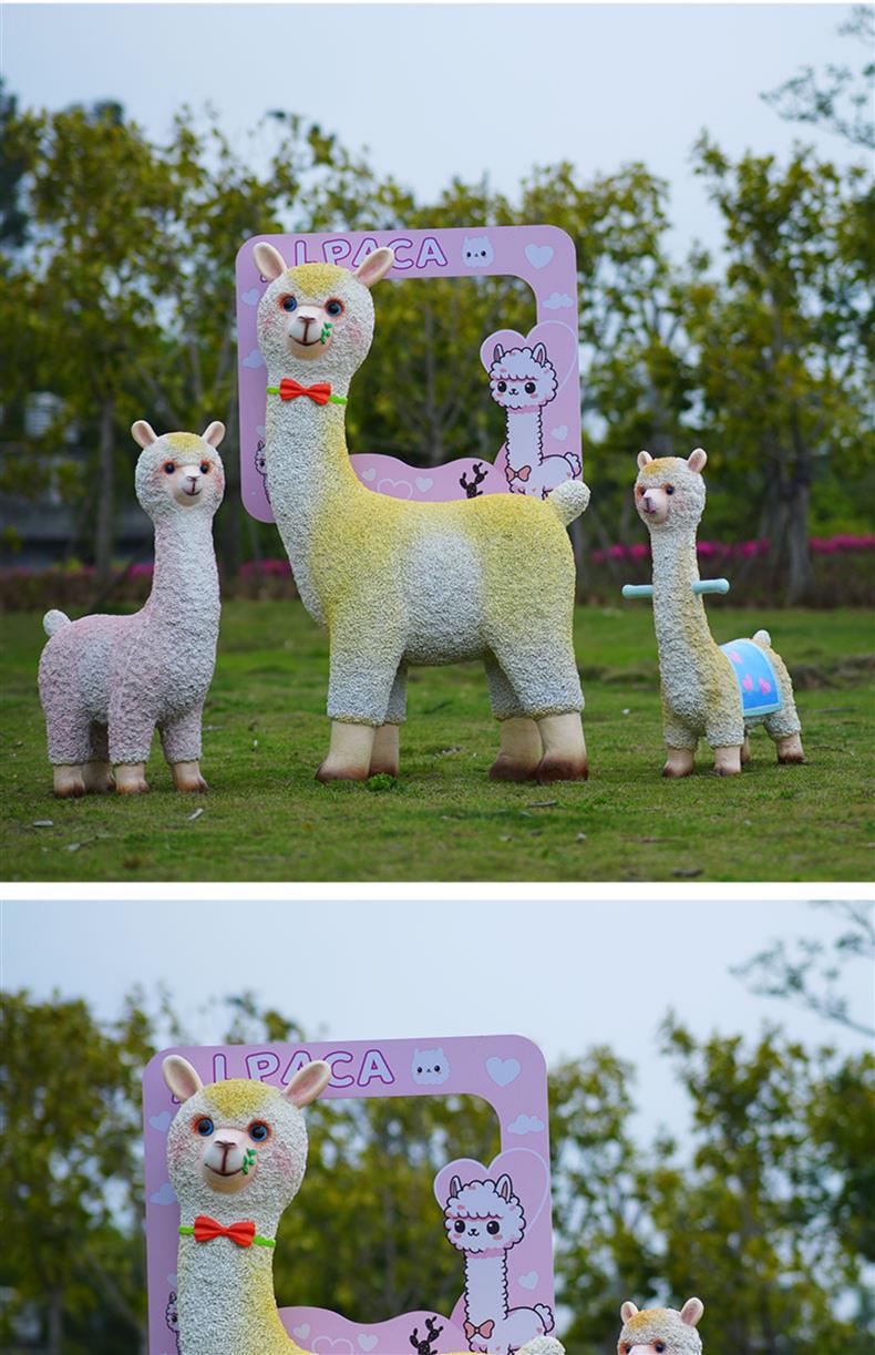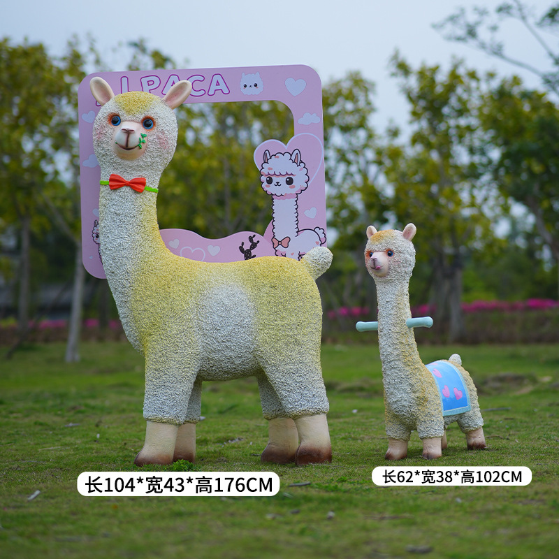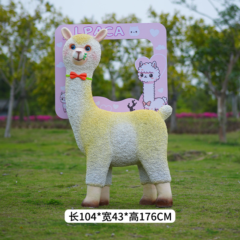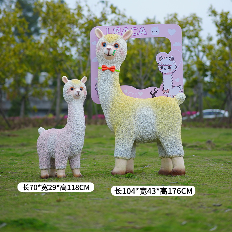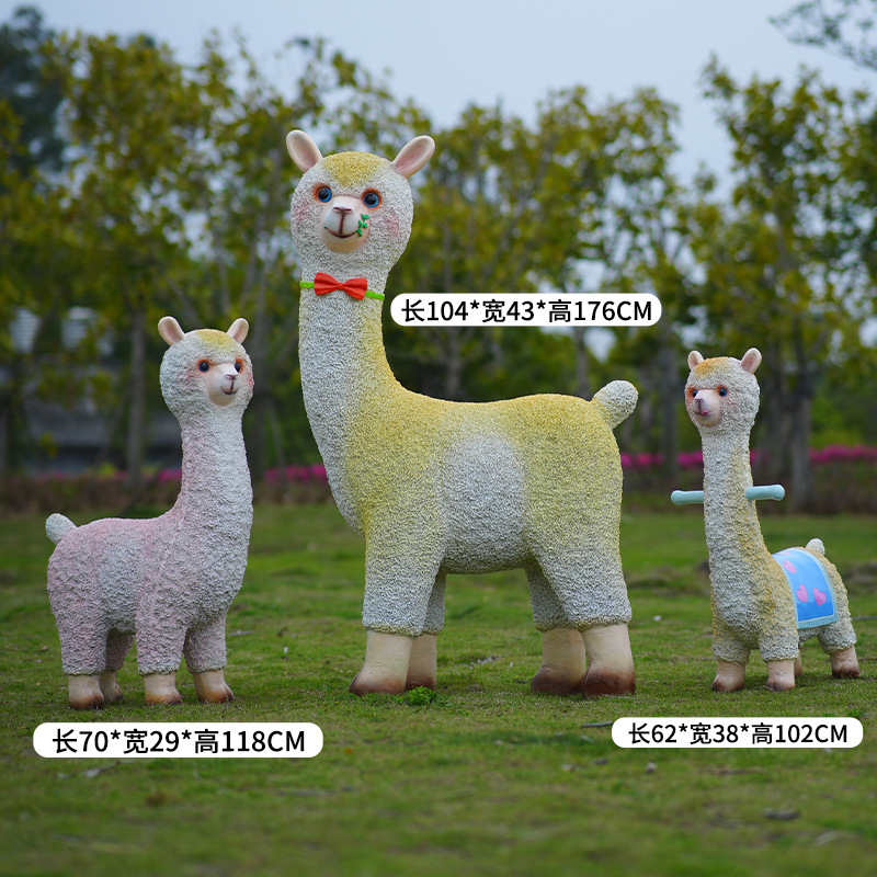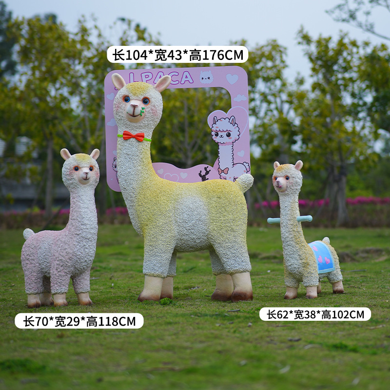 시뮬레이션 동물 좌석, 다채로운 풀 진흙 말, 알파카, 유리 섬유 장식품, 야외 공원 잔디 조각, 지역 장식스토어 가기